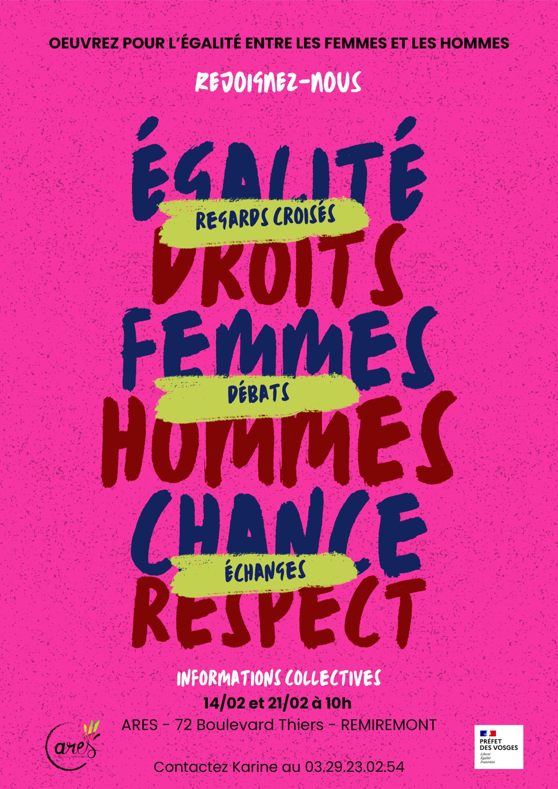 Vous avez des idées ou des témoignages à apporter sur l’égalité femmes-hommes ? Les équipes d’ARES vous attendent les 14 et 21 février à 10 h dans leurs locaux pour ces échanges enrichissants et constructifs. Ensemble, construisons une société plus juste et équitable.