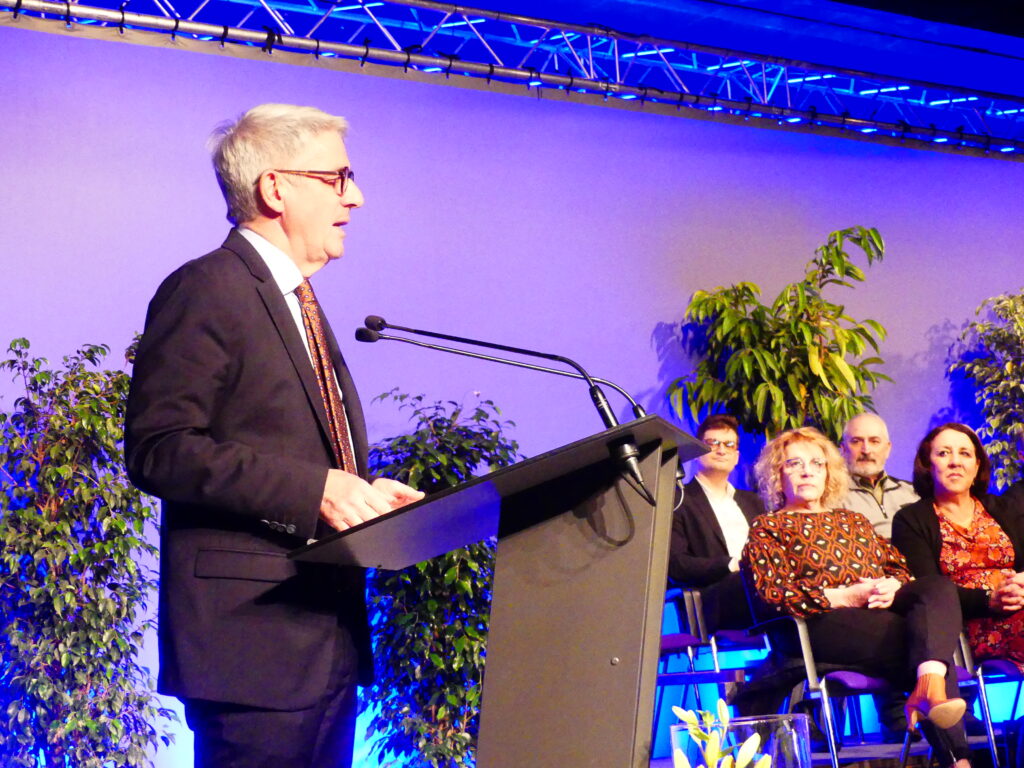 « L’année 2024 a laissé en héritage un contexte international sous tension, marqué par la guerre aux portes de l’Europe et par les conflits au Proche-Orient. Au niveau national, notre pays est ébranlé par l’instabilité gouvernementale et la fragilité budgétaire de l’Etat qui risquent de se répercuter lourdement sur les collectivités territoriales » c’est ainsi que débute le discours du premier magistrat, Patrick Nardin a lors de la traditionnelle cérémonie des vœux, ce vendredi après-midi, au centre des congrès d’Épinal.
