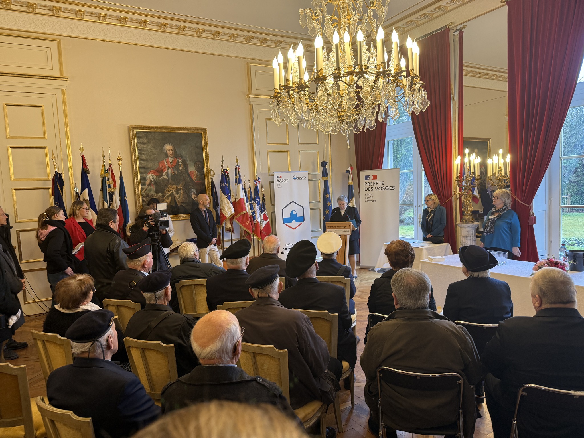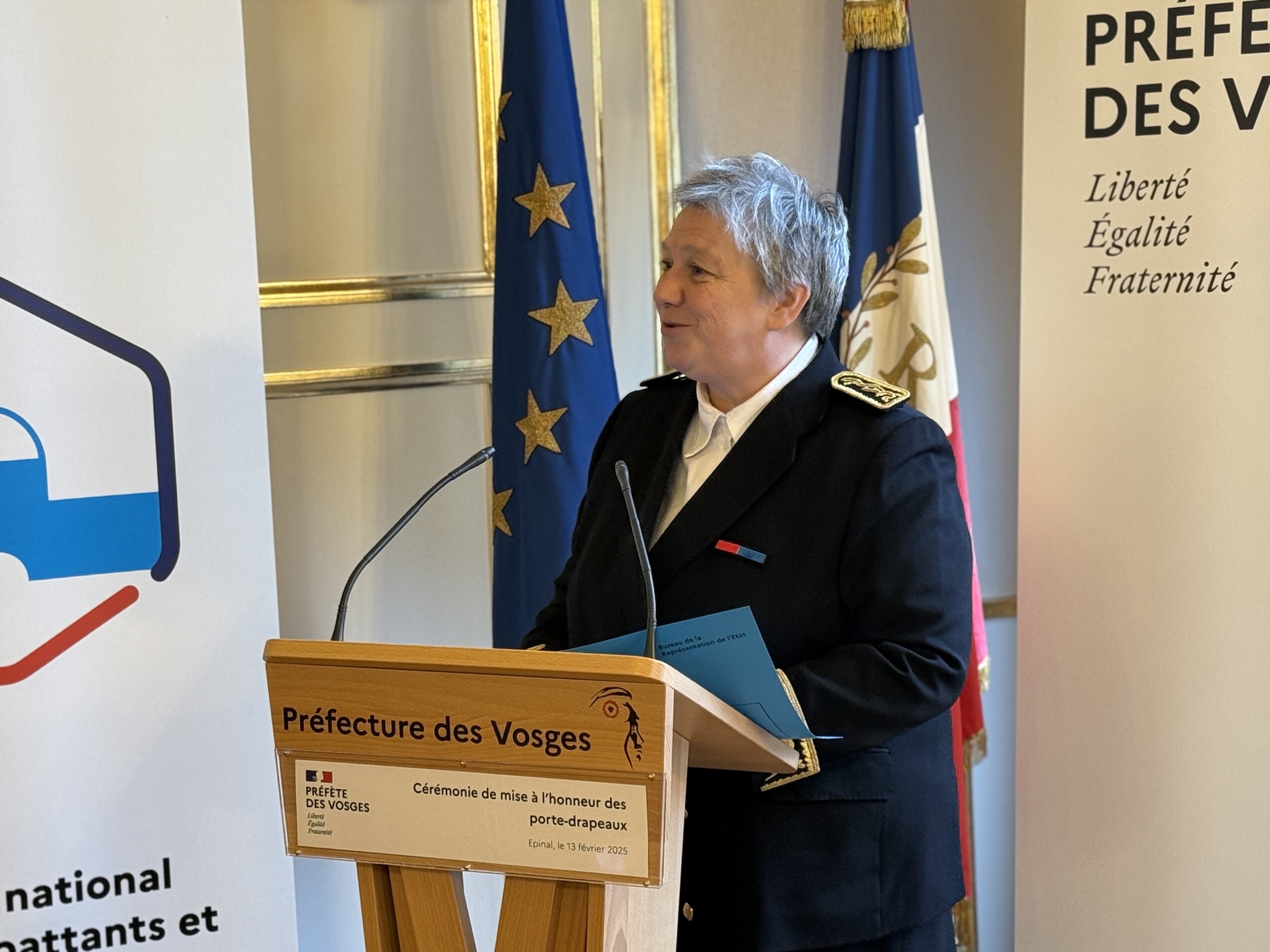 Ce jeudi 13 février, dans les salons de la Préfecture des Vosges, Valérie Michel-Moreaux, Préfète des Vosges, a rendu un hommage solennel aux porte-drapeaux. Figures discrètes mais essentielles de notre patrimoine mémoriel, ces hommes et ces femmes portent haut les couleurs de la mémoire combattante, perpétuant le souvenir des sacrifices passés et affirmant l’unité de notre Nation.