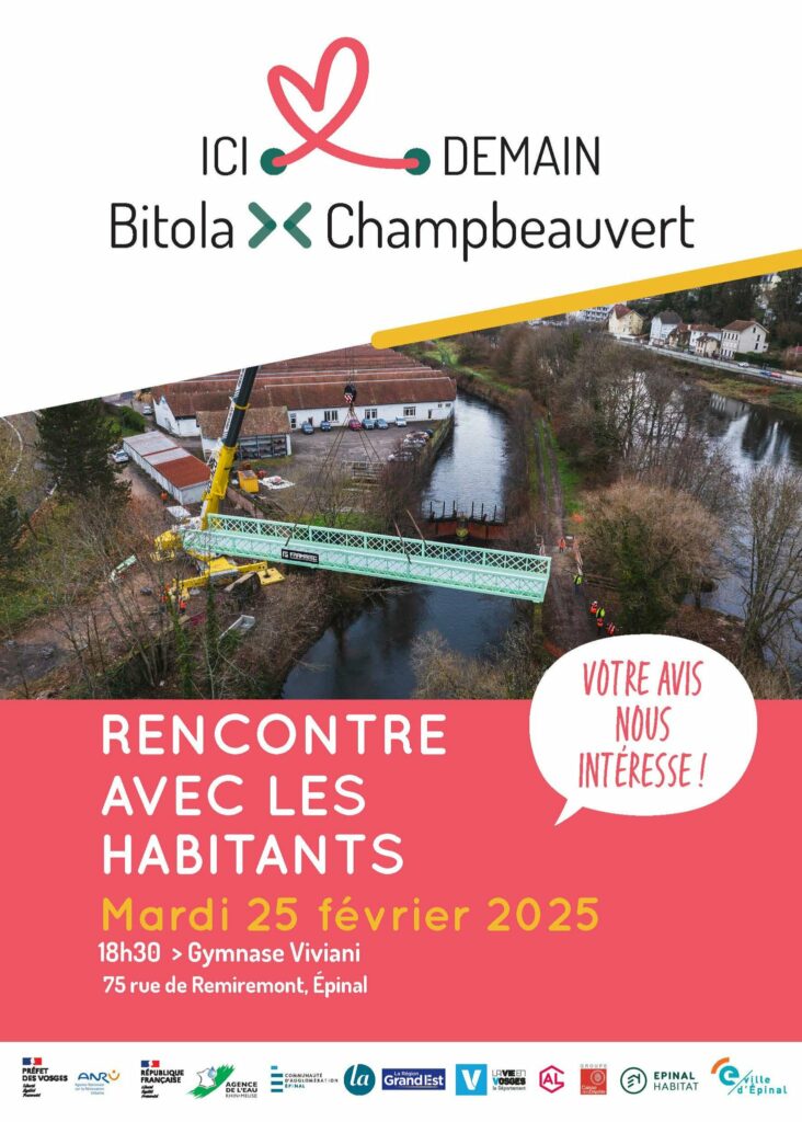 Cette réunion est ouverte à tous les résidents et acteurs économiques du secteur Bitola-Champbeauvert. Ce sera l’occasion pour le maire et les élus de la Ville d’Épinal de faire un point d’étape sur le projet et de répondre aux interrogations du public.
