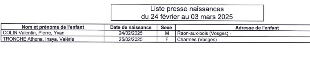 Deprecated: Use of "parent" in callables is deprecated in /project/VIDEV/web/app/plugins/simple-lightbox/includes/class.options.php on line 501 Les naissances du 24 février au 3 mars - Epinal Info