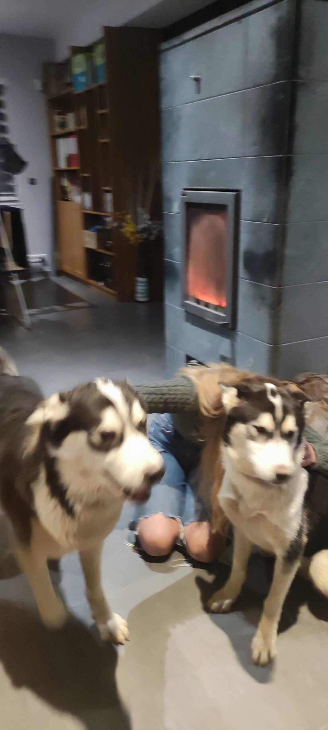 Soho et Kira portent chacun un collier rouge, sont pucés et ne sont pas méchants. Ils répondent à leur nom sans problème.