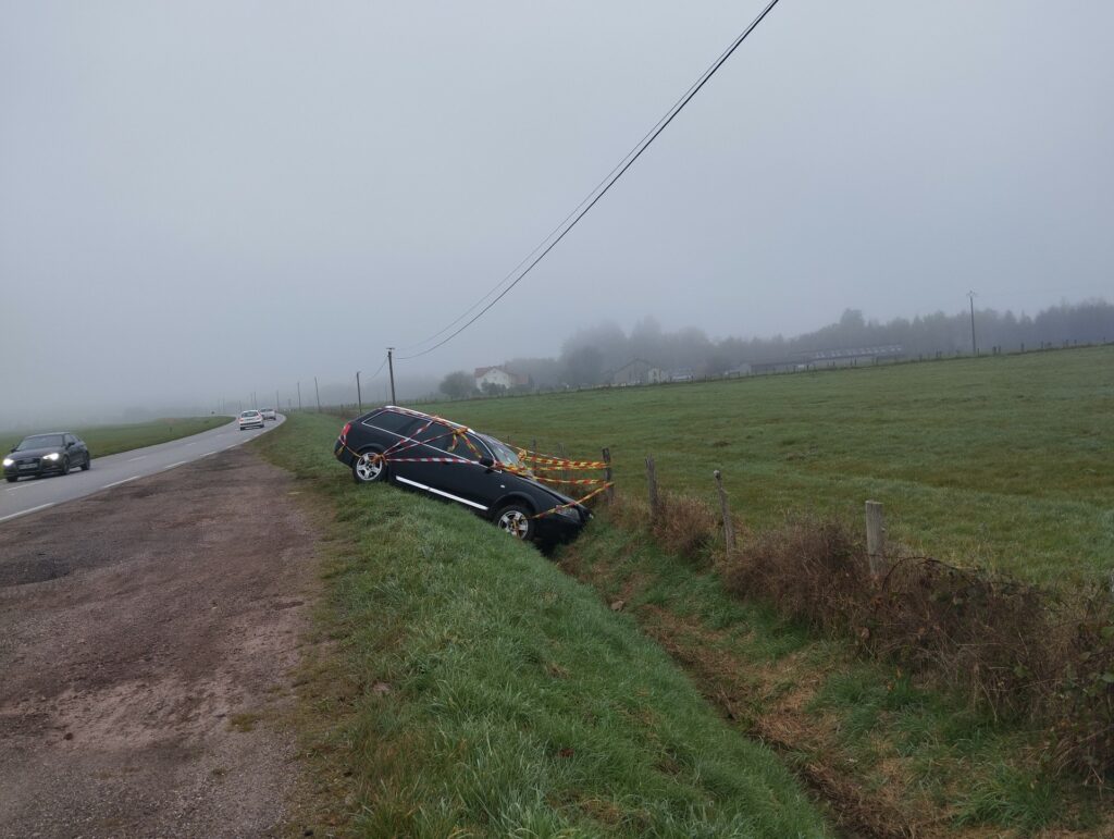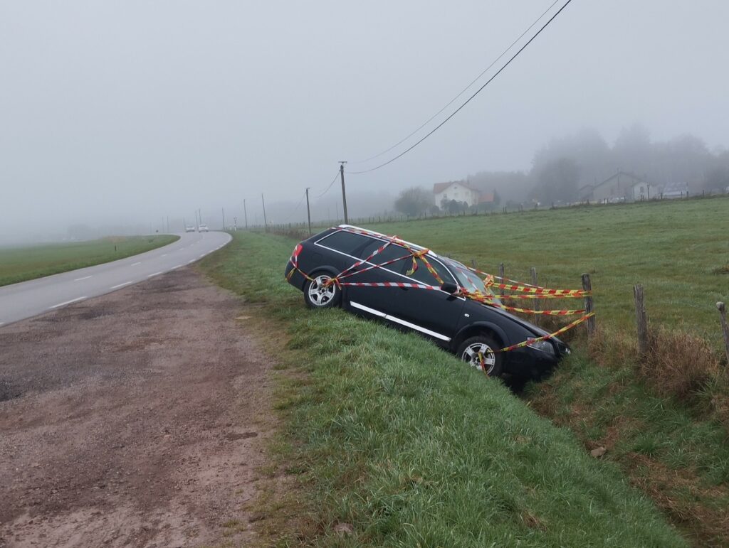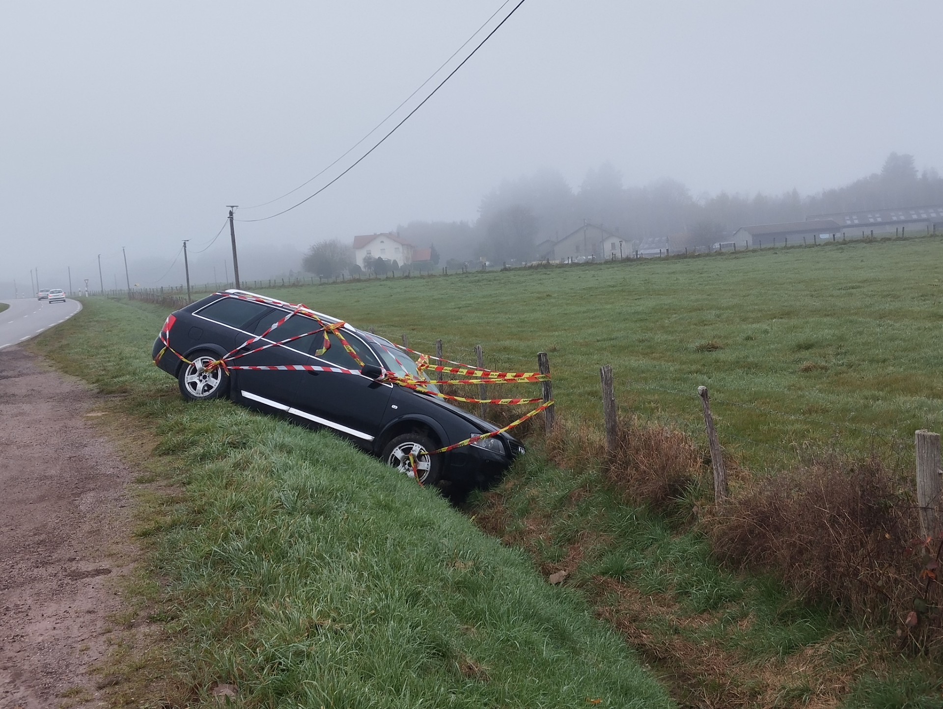 Une voiture a terminé sa course dans le fossé. Elle est située après le radar de La Baffe, en direction de Cheminénil.