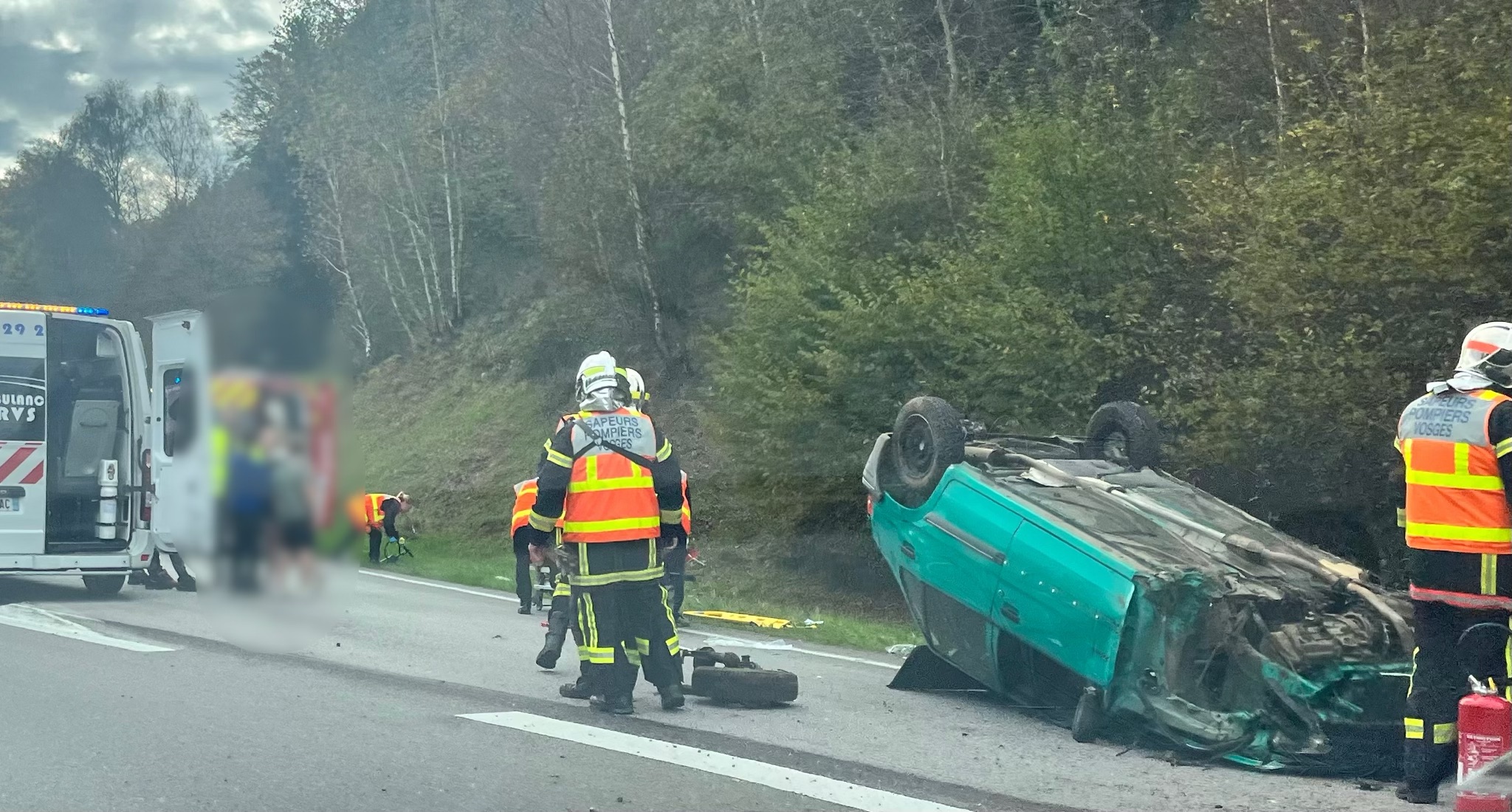 Le véhicule s’est retrouvé sur le toit. La circulation dans le sens Epinal / Remiremont s’effectuait sur une seule voie de circulation pendant l’intervention des secours. L’accident a fait trois blessés légers, qui se sont extraits eux-mêmes du véhicule.