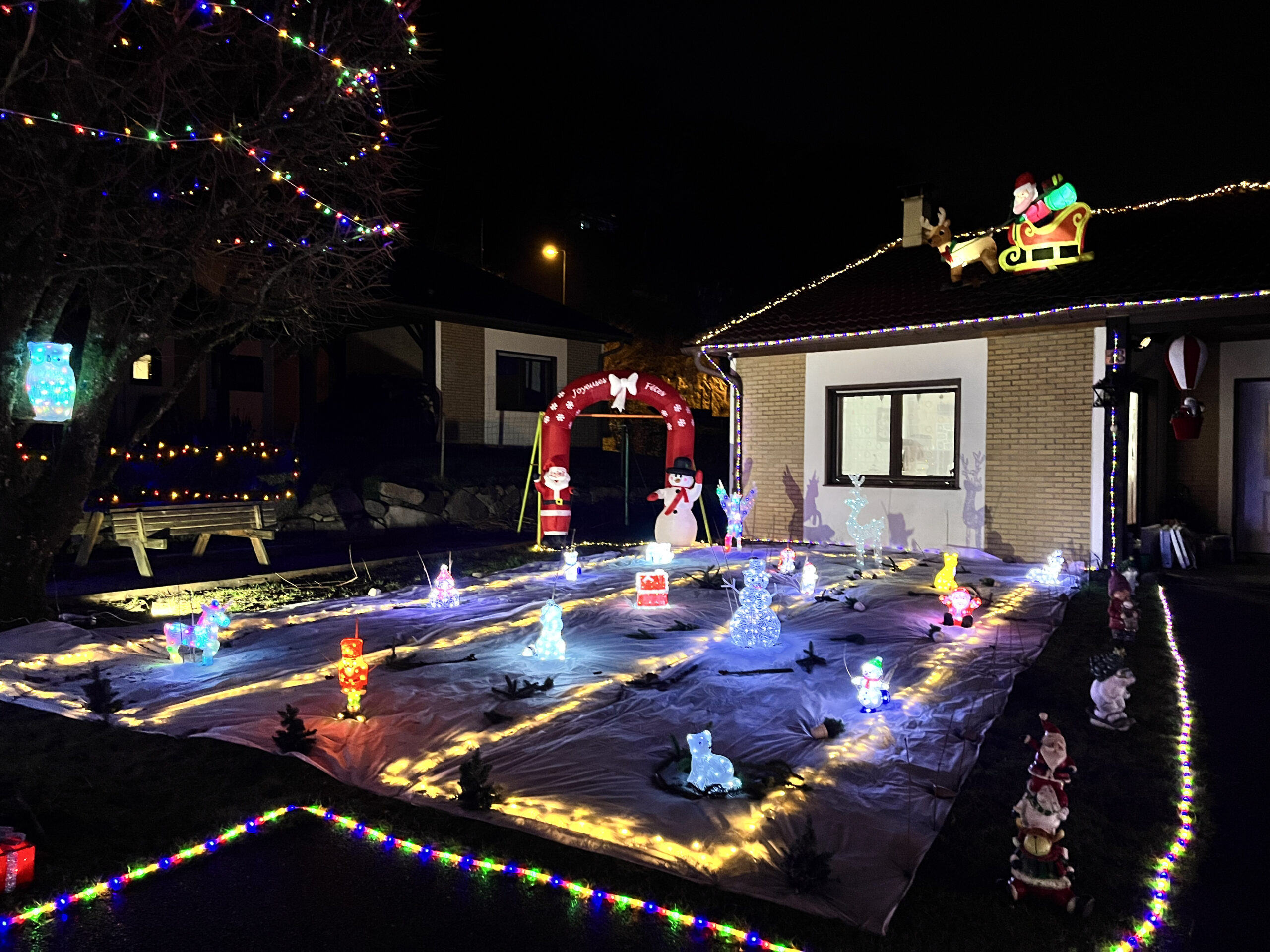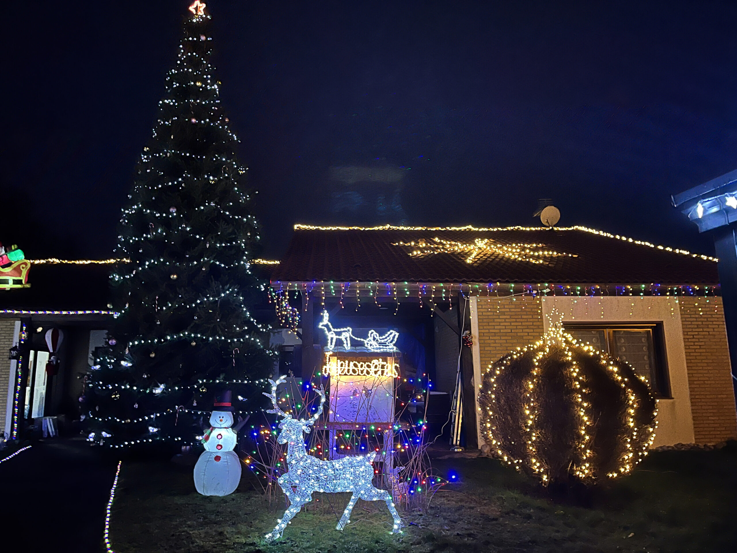 Pierre Briys ne compte pas ses efforts pour sublimer son terrain. Avec plus d’un kilomètre de guirlandes et plus de cent décorations lumineuses, il transforme chaque coin de sa propriété en un spectacle magique. Si au début, ses décorations étaient modestes, elles se sont étoffées au fil des années, au fur et à mesure que sa passion pour les lumières grandissait. Ce qui a commencé pour émerveiller ses enfants est désormais un spectacle offert à ses petits-enfants, mais aussi à tous les enfants qui passent dans la rue.