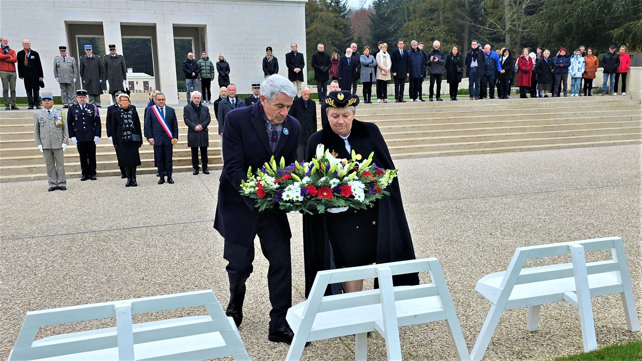 Les cérémonies de recueillement ont débuté au cimetière américain du Quéquement à Dinozé, se sont poursuivies au monument aux morts de Saint-Laurent, pour se conclure sur la Place Foch d’Épinal.