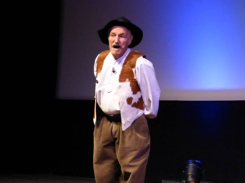 Un maillot de champion du monde offert par Joël Michel président de Gérardmer-TrithlonLe temps d’une rapide photo souvenir, le triathlète a caché son nouveau maillot dans son sac de sport, avant de prendre le micro avec la timidité que l’on lui connait. » Bon ben merci à vous tous d’être là. Quand j’ai repris l’entrainement après des années d’arrêt, je ne pensais pas revenir à ce niveau. Je tiens à associer à mes performances, ma famille, mes proches qui jouent un rôle considérable. En 2015 j’ai un titre à défendre et forcément je cherche des partenaires afin de pouvoir me requalifier pour la finale qui se déroulera encore à Hawaï…Tout cela coûte cher !