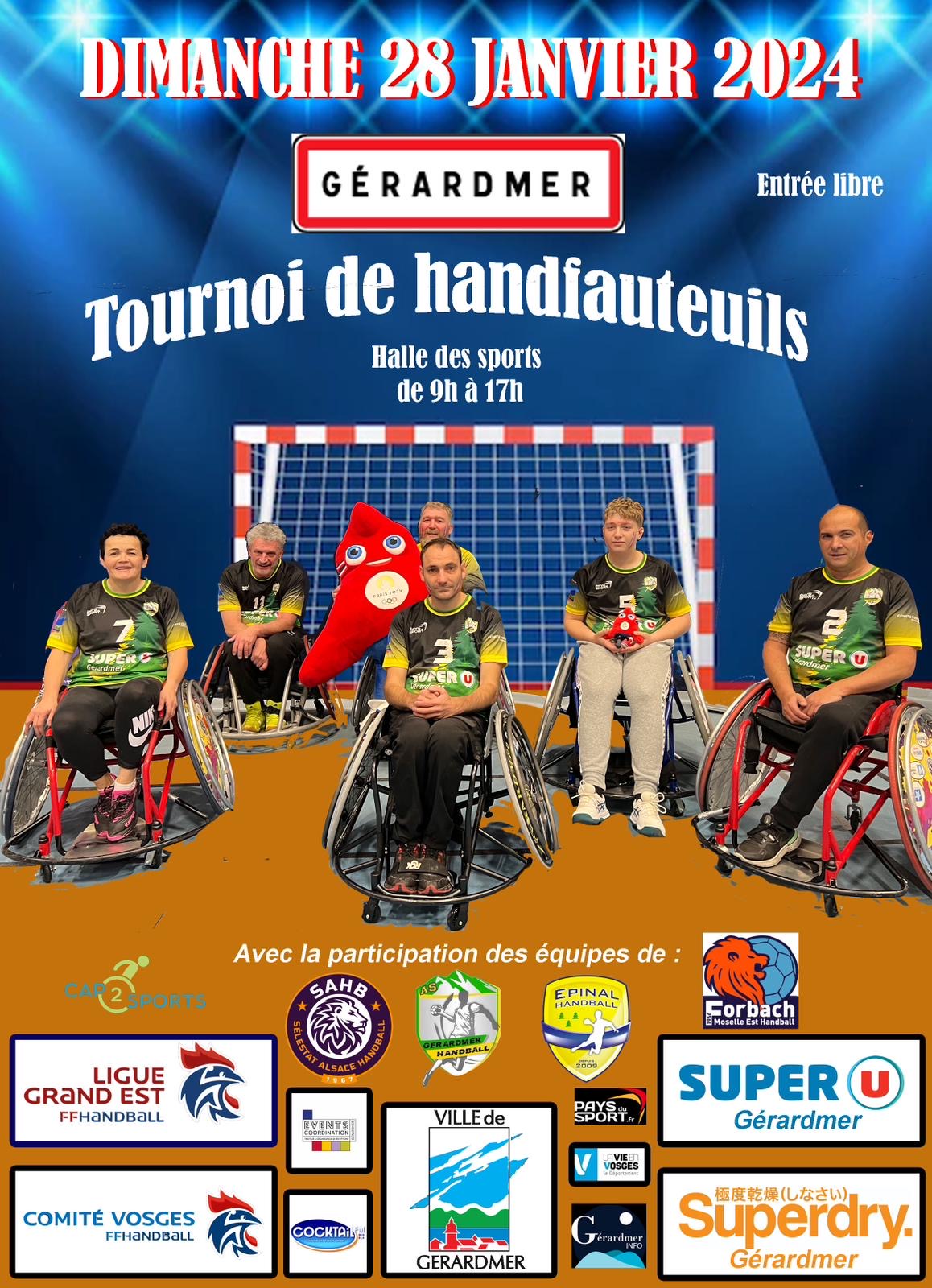 Le club de Gérardmer organise un nouveau tournoi de Handfauteuils ce dimanche 28 janvier à la Halle des Sports de GERARDMER de 9h30 à 17h15.