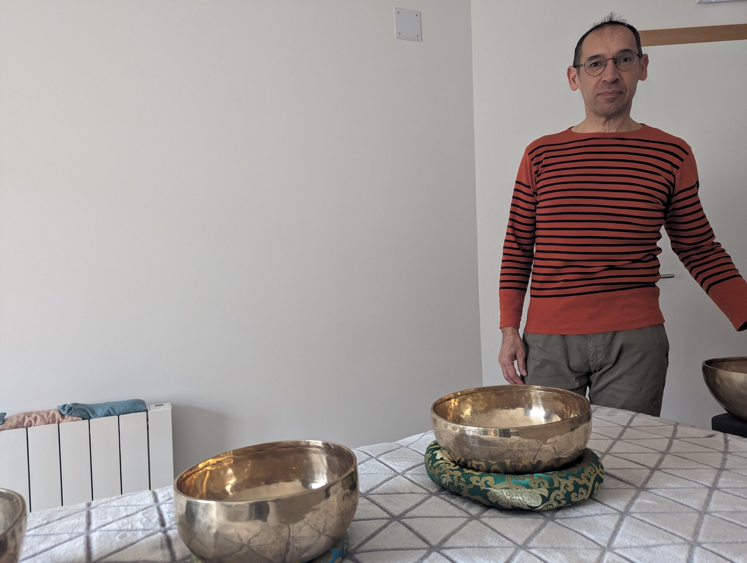 Professeur de yoga sur le secteur de Gérardmer depuis 2020, Olivier CHARLES propose depuis le début de l’année 2024 des massages sonores pratiqués avec des bols tibétains.