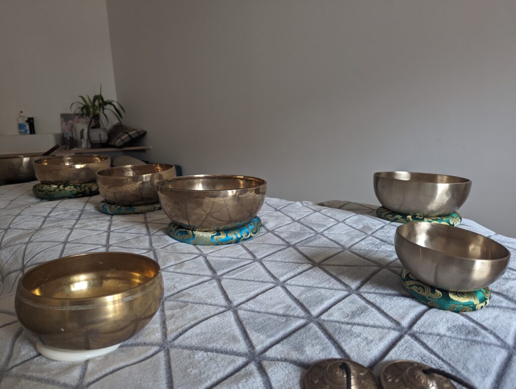 Ces massages sans contacts physiques se font par l’installation de bols de différentes tes tailles à différents endroits du corps ou en périphérie, ces derniers produisant différents sons et différentes intensités en matière de vibration. Des vibrations qui traversent le corps (composée en majeure partie d’eau, un excellent conducteur), les organes, les muscles, les os et l’ensemble des cellules, produisant un effet relaxant et enveloppant particulièrement agréable. Un moment de détente et une expérience sensorielle où l’ouïe est également sollicitée en parallèle du reste du corps, et ce de manière très douce et progressive.