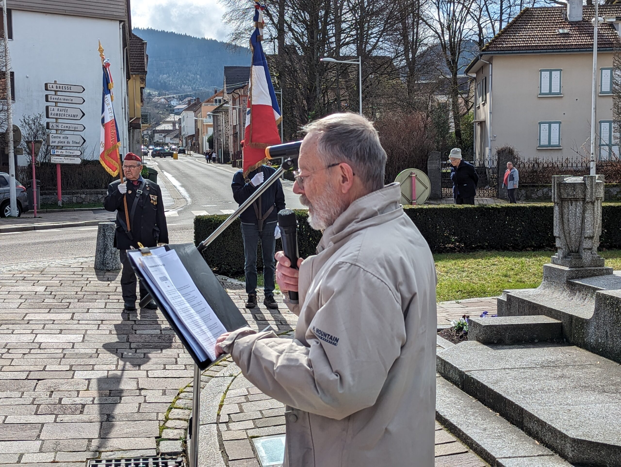 Ce mardi matin, la cérémonie commémorative du cessez-le-feu en Algérie s’est déroulée sous le soleil au monument aux morts de Gérardmer. Après un premier dépôt de gerbe au niveau de la stèle dédiée aux combattants d’Afrique du Nord, élus, porte-drapeau, représentants des associations patriotiques et des autorités locales ont poursuivi au pied du monument pour un second dépôt de gerbe précédé de la lecture d’un message de la FNACA par son représentant Francis Bretenou, ainsi que du manifeste de l’ARAC par son président Alain Morel.