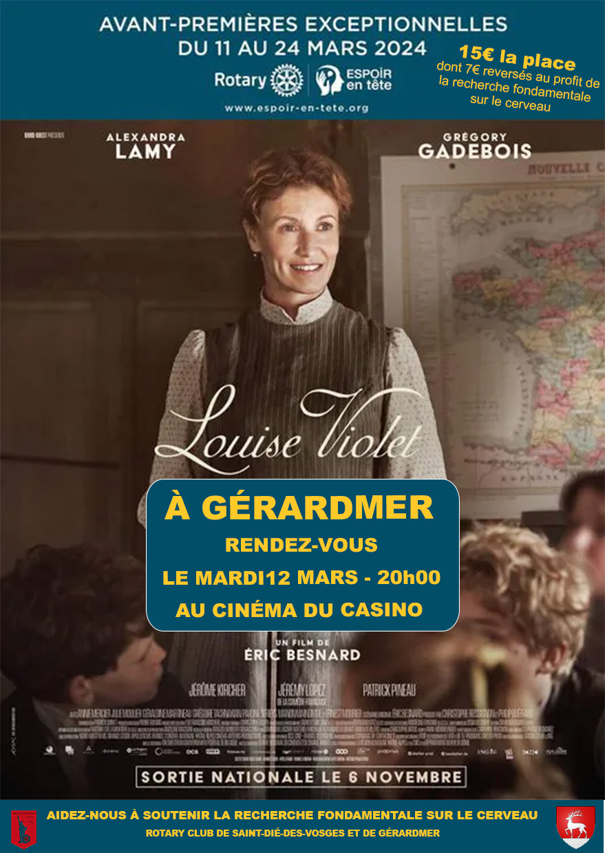 Cependant, les rotary clubs de Gérardmer et de Saint Dié, s’unissent pour vous organiser une diffusion en avant première de ce film d’Eric BESNARD, avec Alexandra Lamy.