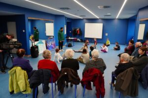 Le stage de Hip-Hop et M.A.O. a accueilli 8 résidents de la maison de retraite, qui ont pu danser avec les jeunes ou témoigner sur les peintures réalisées. Une résidente dira ébahie : « Ces enfants, ils sont extraordinaires. »