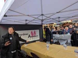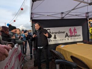 Philippe Candeloro a naturellement effectué un crochet par la patinoire de Gérardmer avant de s’installer au marché du skieur, place du Vieux Gérardmé, pour aller à la rencontre de ses fans et enregistrer une émission de radio. Une chose est sûre, il est toujours aussi populaire et disponible pour le public, ce qui l’a d’ailleurs mis un peu en retard pour sur le planning initial. Mais quand on aime, on ne compte pas !