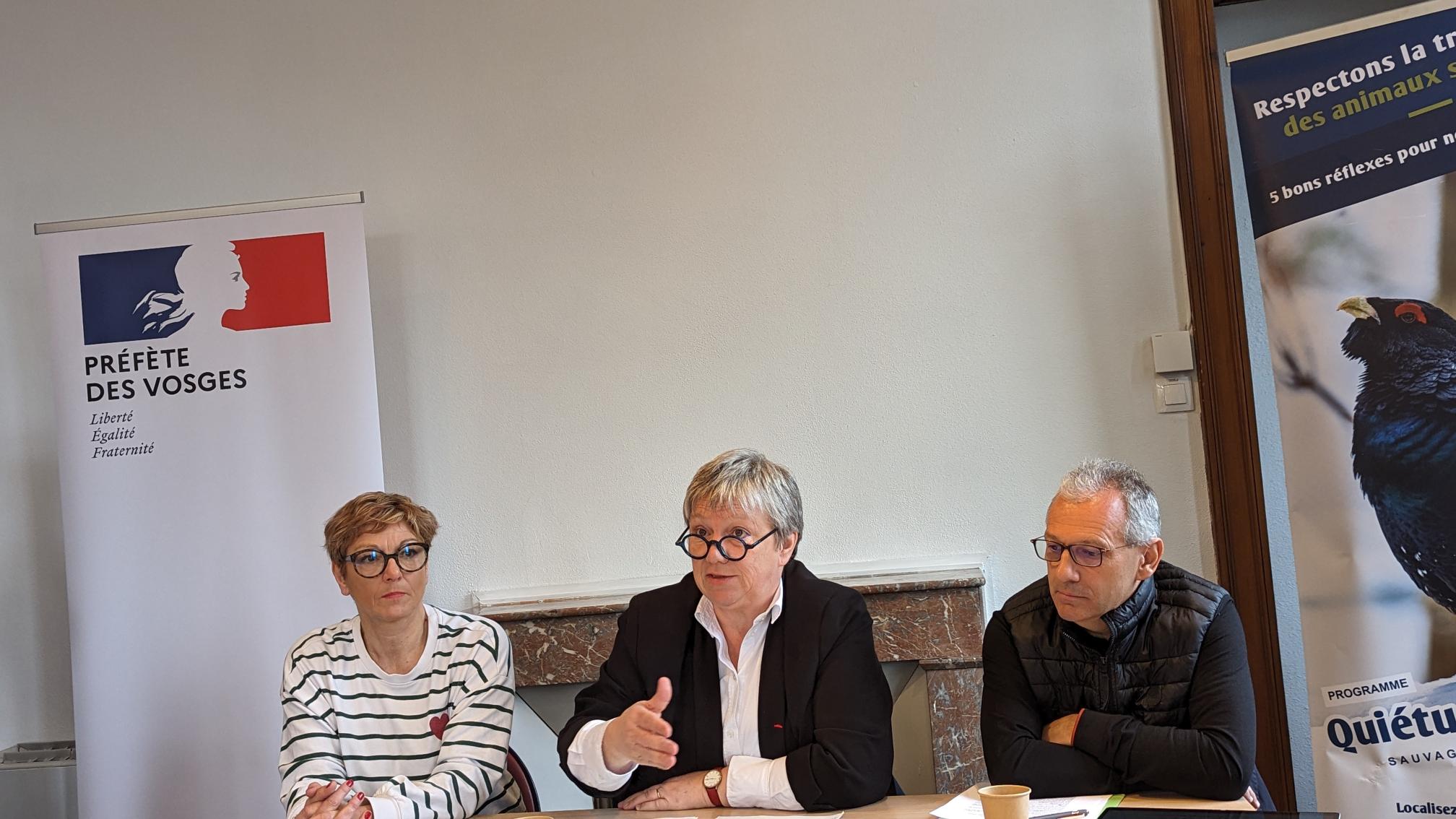 Mardi matin, Valérie Michel-Moreaux, préfète des Vosges, Sylvie D’Alguerre, conseillère de la Région Grand Est et Laurent Seguin, président du Parc naturel régional des Ballons des Vosges, avaient invité la presse et réuni les partenaires du plan de renforcement du Grand Tétras à la villa Monplaisir de Gérardmer.