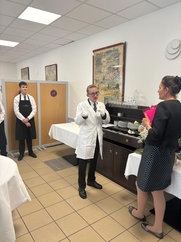 Au programme de ces deux journées, l’accueil par le président du jury et le parrain de l’épreuve, Victor Delpierre, champion du monde barista et cocktails en 2013. Mais aussi une épreuve de sciences et technologies culinaires de 3 heures, la même chose en service et une soirée de gala avec tous les candidats, les membres du jury et les enseignants accompagnateurs. Bref un programme dense et éprouvant. Pour une première participation à ce type de concours, Lenny ressort de l’épreuve satisfait de ses prestations, même si de son propre aveu, il est plus à l’aise dans la partie service que dans la partie cuisine. Impossible évidemment de connaître les résultats avant les délibérations du jury, mais il devrait savoir fin juin s’il fait partie des trois meilleurs candidats de la compétition, auquel cas le prochain trajet se ferait vers Paris et la Sorbonne le 11 juillet pour recevoir un prix. C’est évidemment tout ce qu’on lui souhaite !