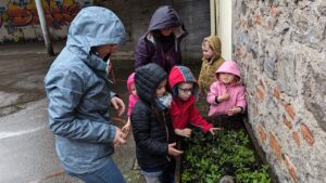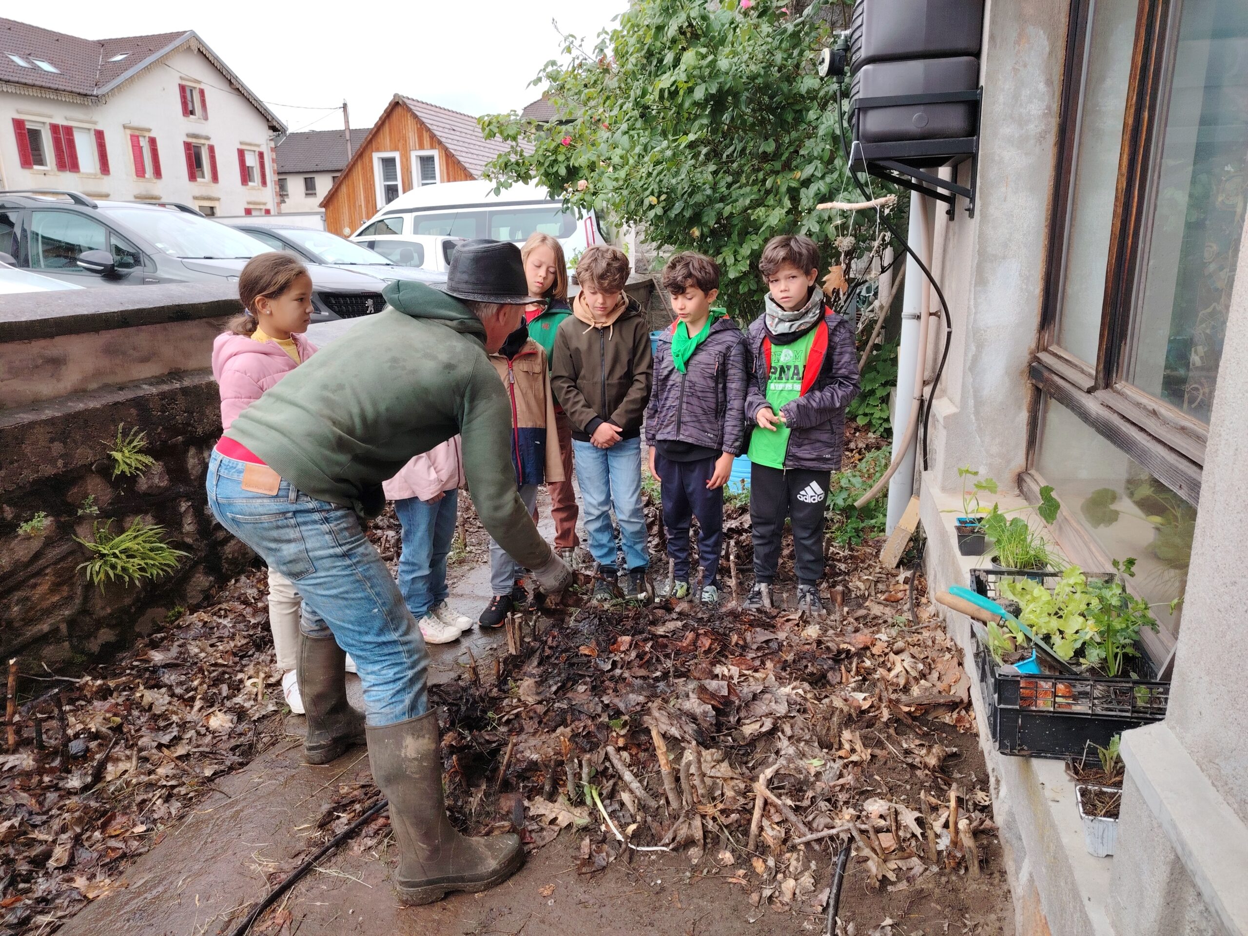 Dans le même temps et en attendant le retour de leurs ainés, d’autres écoliers pouvaient commencer à planter fleurs, fruits & légumes dans les bacs et espaces prévus à cet effet, préalablement nettoyés. Certains ont également rempoté des plantes comme de la menthe, d’autres ont arrosé, bref, chacun a mis la main à la pâte. En parallèle, Delphine de la ludothèque a également animé un jeu sur le thème du jardin. Bref, une matinée bien remplie pour l’ensemble des participants qui ont également participé au paillage avec explications du jardin en permaculture, ou encore au nettoyage de la partie mise en jachère afin d’y semer de l’engrais vert.Enfin, après une première partie au grand air et sous une pluie fine, le retour au chaud pour l’après-midi était réservé à des ateliers dans les différentes classes autour de la biodiversité et de l’environnement. Tout un programme !