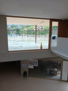 Dans l’Ecoterritoire du Val de Villé, un magnifique bâtiment « bois, béton, verre » , bâtiment à énergie passive (seule une petite chaudière de 50 kW l’alimente, sa conception,le soleil et les matériaux utilisés font le reste ) vient d’être inauguré à Maisonsgouttes.