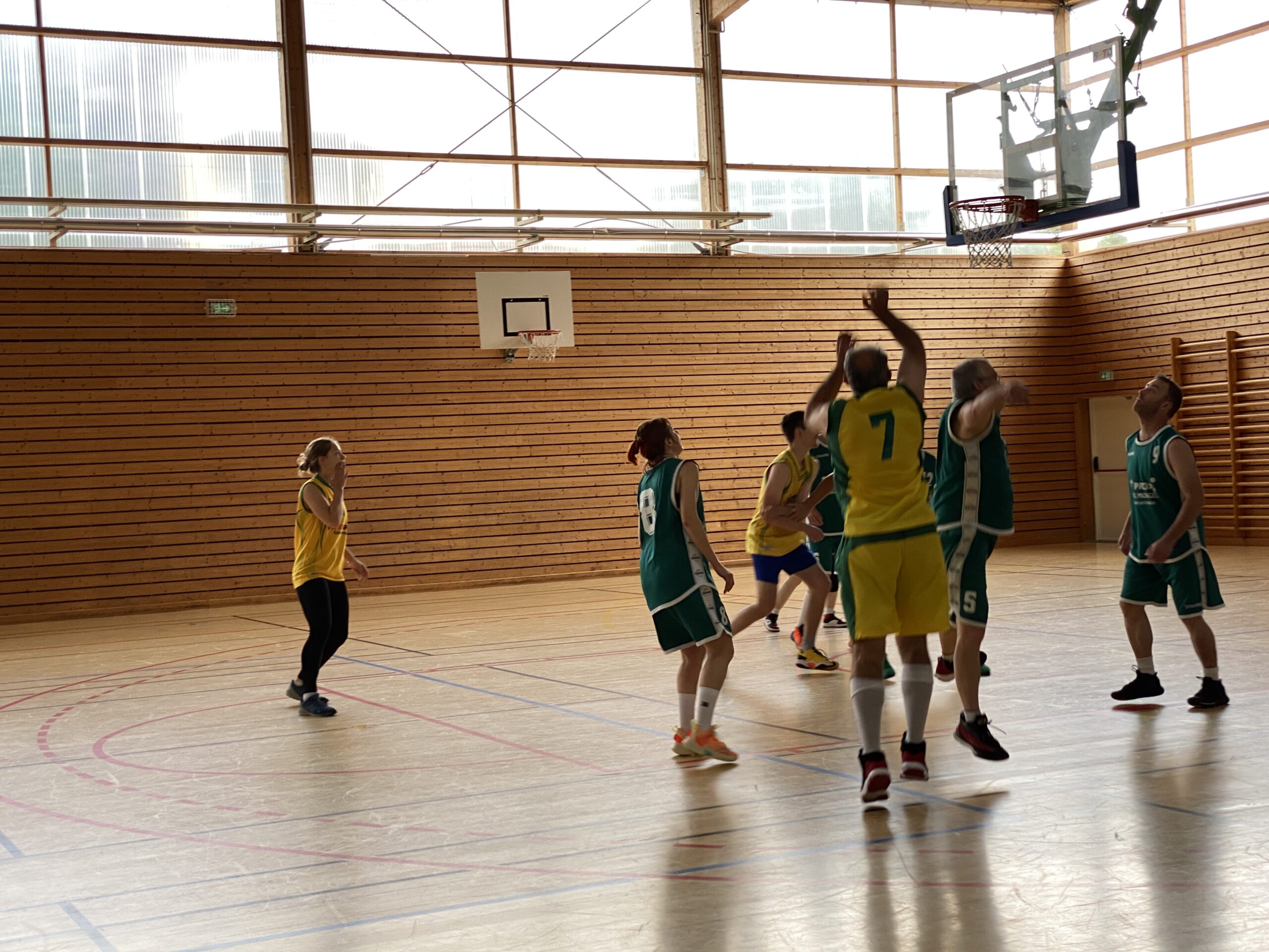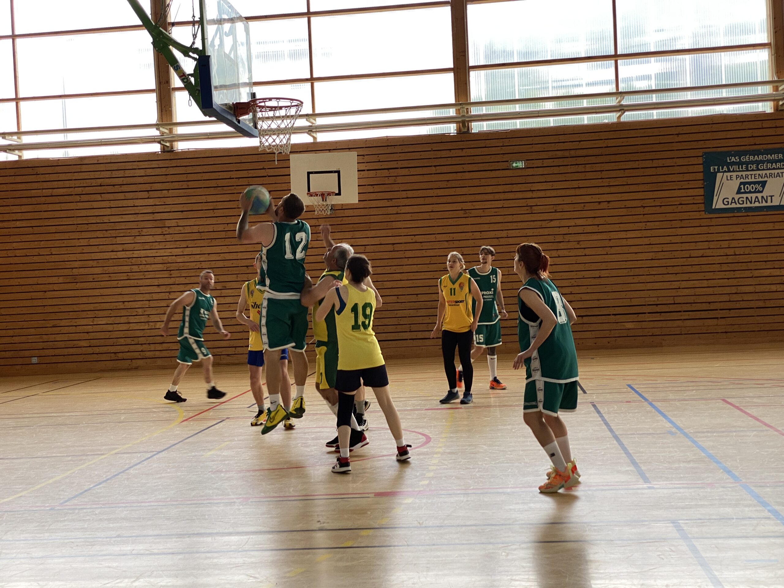 Ça fera 60 ans le 4 novembre prochain que les frères Didier ont disparu. Et une cinquantaine d’années que les cousins Didier ont repris le basket, « en pointillé » raconte Patrick Didier. Ils ont monté une équipe loisirs il y a 6-7 ans et depuis s’entrainent tous les mercredis soirs. La rencontre du jour opposait un noyau de Didier contre le reste de l’équipe loisirs. Pour l’occasion les Didier ont revêtu les couleurs jonquilles de Gérardmer et l’adversaire le maillot vert de Granges.