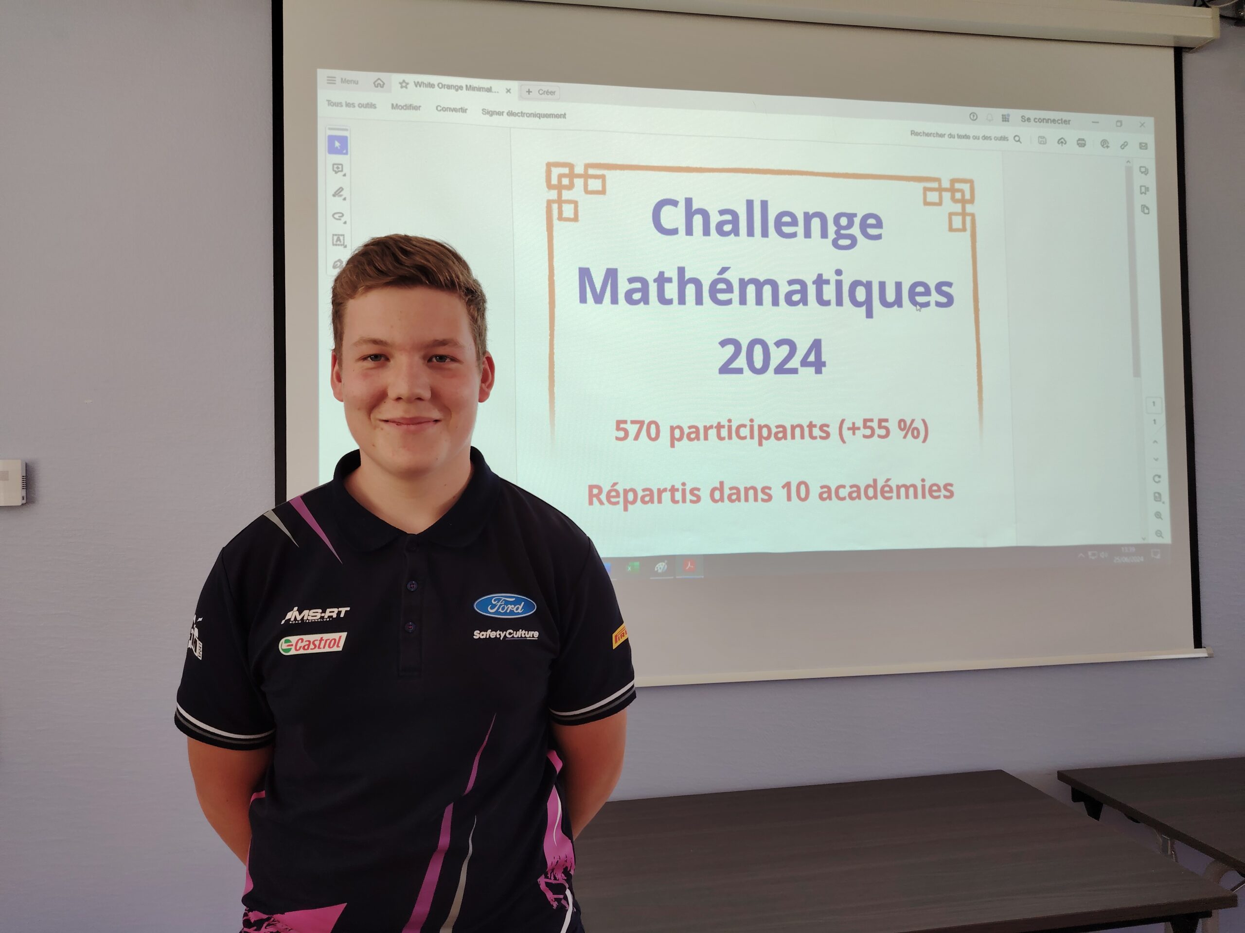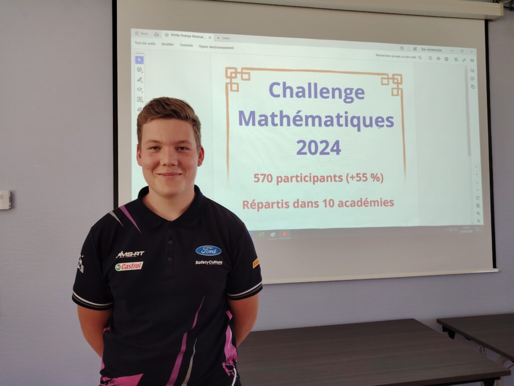 La professeure de mathématiques Angélique Noé a été bien avisée d’inscrire sa classe au challenge national de mathématiques organisé sur une dizaine d’académies puisque son élève Lorik Tapp s’arroge la première place sur 570 participants. « C’est très rare d’avoir ce genre de concours dans les lycées professionnels » dit-elle. Le sujet portait sur les sports olympiques et les lycéens se sont bien investis. Elle est très fière d’eux. 2 autres élèves, Maxime Poirot et Kény Dos Santos se sont distingués également et se classent respectivement 8e et 11e. Lorik Tapp a 16 ans et est originaire d’Anould. Il est passionné de sports automobiles et a toujours voulu être mécanicien. Son rêve est de devenir pilote de rallye professionnel, il a même déjà acheté sa voiture, une 106 XS1N1. Selon lui le challenge n’était pas bien compliqué.