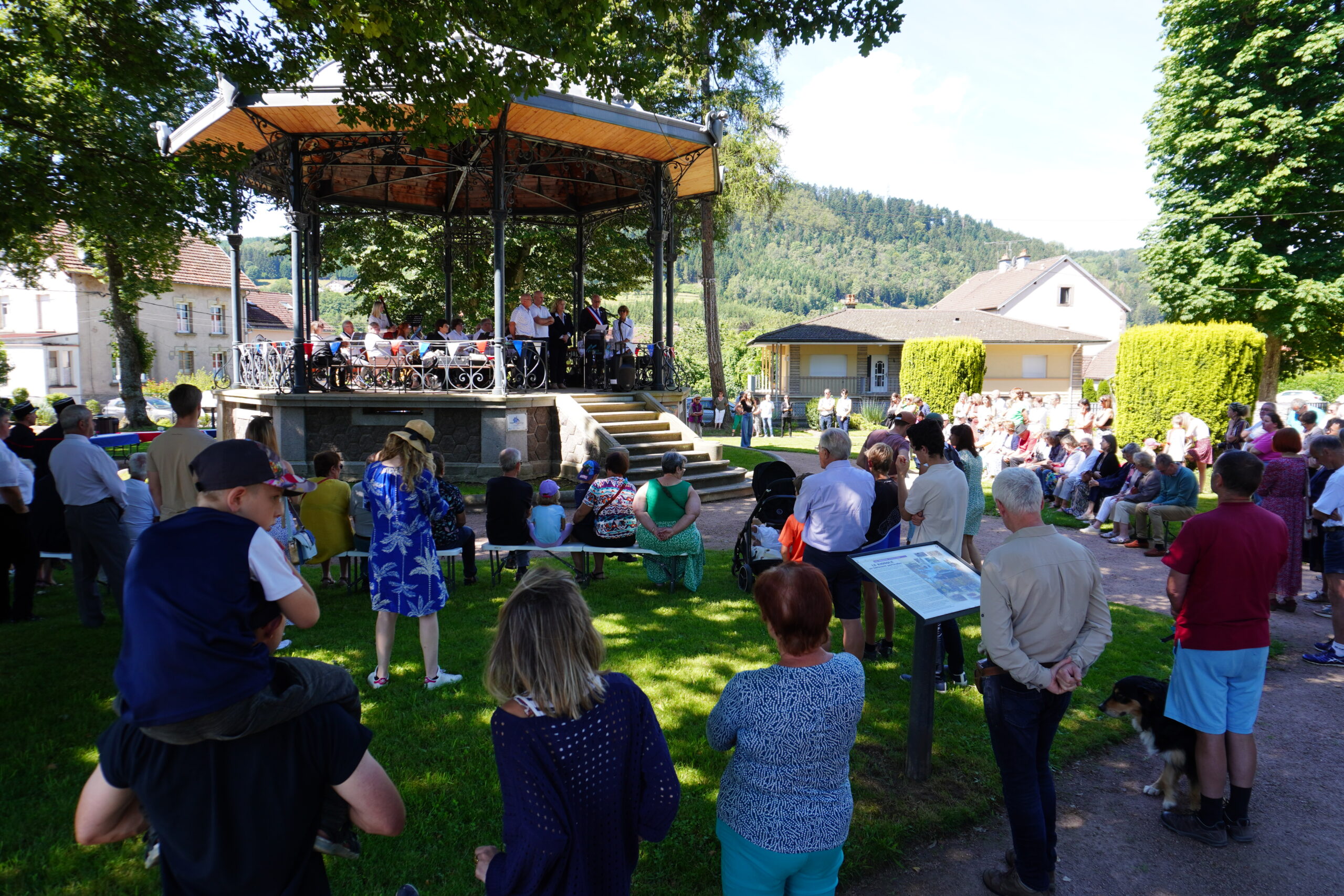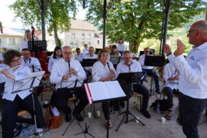 Enfin, la traditionnelle aubade du 14 juillet, offerte par l’ensemble Les gens d’air, s’est déroulée dans le parc du kiosque. L’harmonie municipale était dirigée pour la toute dernière fois par Benoît Grocolas, coordinateur culturel à Granges-Aumontzey. Le public était nombreux à avoir répondu présent pour cette matinée de célébration. La matinée s’est terminée par un vin d’honneur sous la fraîcheur des arbres, offert par l’équipe des extra-municipaux qui s’est mise aux fourneaux tôt le matin pour confectionner les amuses-bouches et proposer des rafraîchissements et des fruits frais, faits maison et surtout avec cœur.
