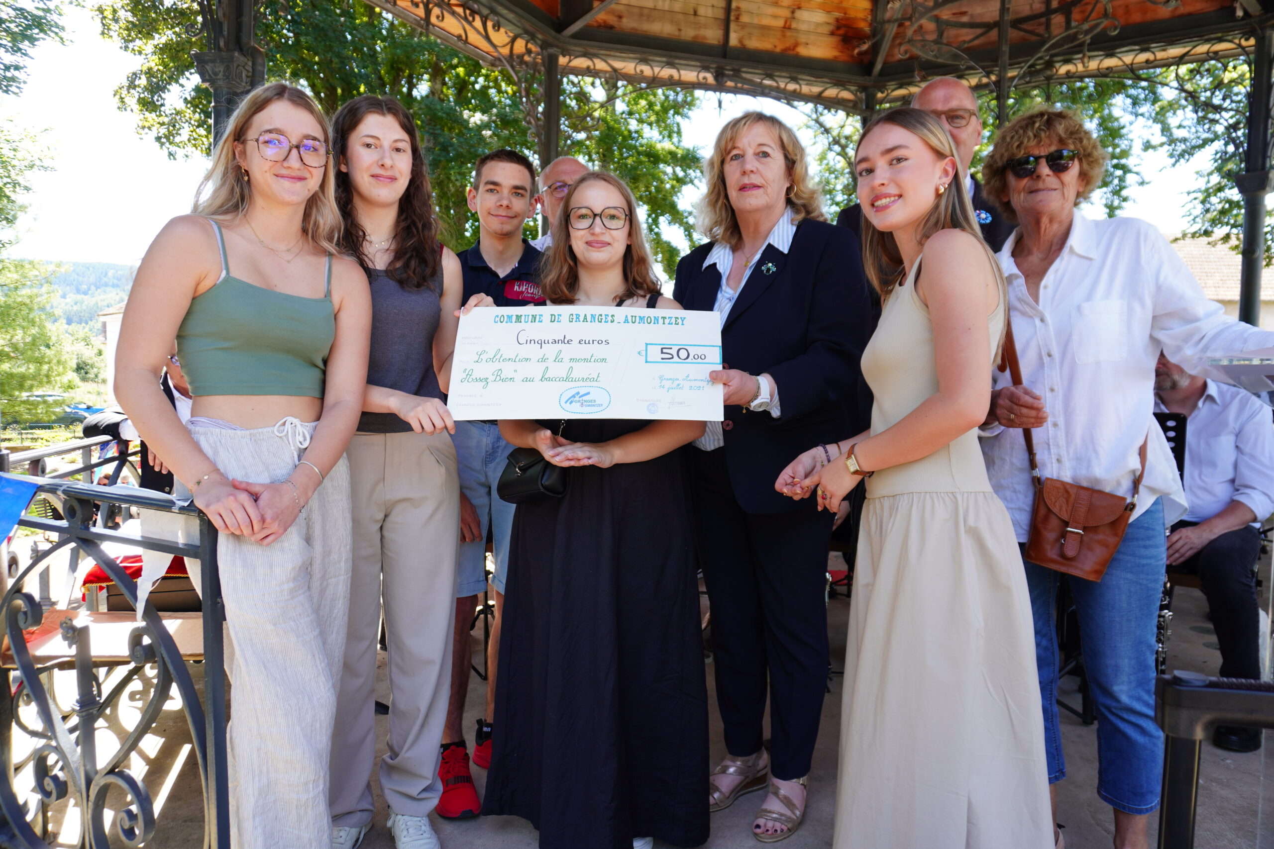 La seconde partie de la matinée a été marquée par le discours de Frédéric Thomas, qui a rappelé les valeurs de liberté, d’égalité et de fraternité à l’origine de la prise de la Bastille en 1789. Puis, à Granges-Aumontzey et depuis quatre ans, les jeunes bacheliers de toutes spécialités ayant obtenu une mention reçoivent un chèque en récompense. Corinne Mourot, première adjointe, a félicité les jeunes lauréats : pour la mention assez-bien, 50 € ont été remis à Evan Bansept, Elisa Gaudé, Elisa Mathieu Gaire, Emma Van Driel, et Marie-Léa Wernert ; pour la mention bien, 100 € ont été attribués à Noa Longo, Emma Ollivier, Dimitri Schoepfer-Walter, Abdel-Malek Simon, et Lisa Van Driel ; et pour la mention très-bien, 150 € ont été délivrés à Leïla Garzia, Juliane Jacob, et Louis Richard. Les bacheliers devaient être présents ou représentés pour recevoir leur récompense. Félicitations à toutes et tous, et avis aux futurs bacheliers !