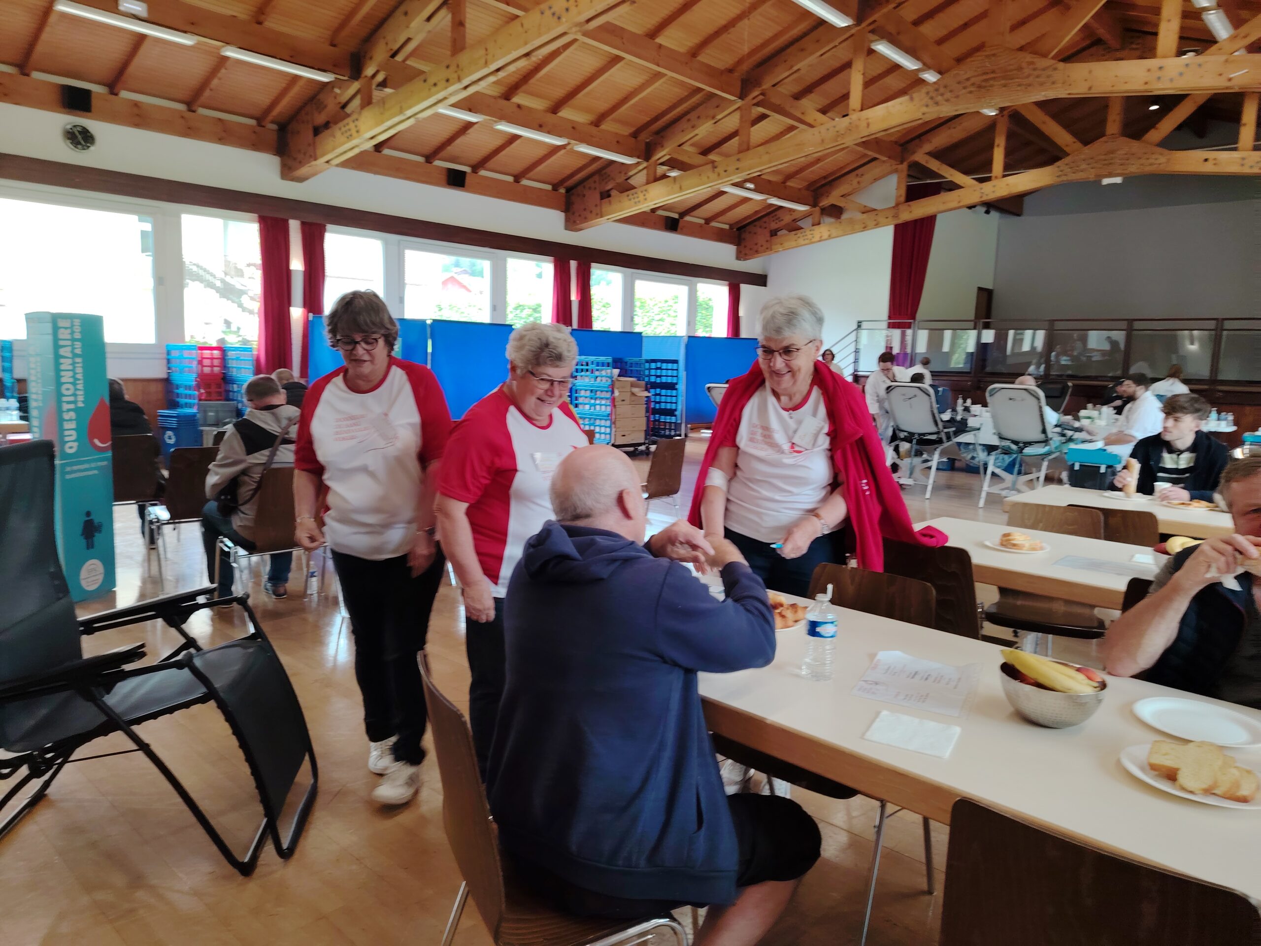 Une quinzaine de bénévoles a accueilli chaleureusement les donneurs avec un beau buffet garni de fruits, croissants, chouquettes, brioches, croques monsieur, pâtés lorrains et sandwichs le tout accompagné de boissons chaudes ou froides. De quoi donner envie de revenir !