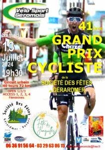 Le Vélo Sport Gérômois organise le 41ème Grand Prix de la Société des Fêtes ce samedi 13 juillet 2024 au centre-ville de GERARDMER.