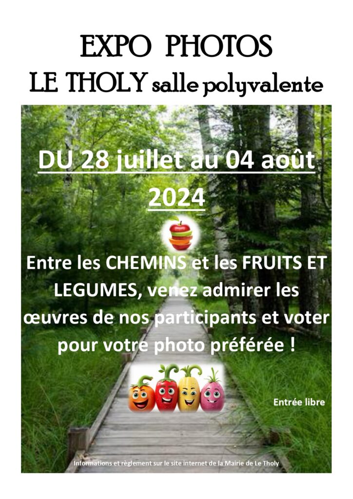 Cette exposition aura lieu du 28 juillet au 04 août et aura pour thèmes : les chemins (thème adultes) et Fruits et Légumes (thème enfants). Le public est invité à voter pour sa photo préférée et un tirage au sort sera effectué en fin de semaine pour désigner les heureux gagnants d’un agrandissement de leur photo favorite. Merci aux participants de nous donner encore l’occasion de voyager cette année avec une belle sélection d’images… L’entrée est libre à la salle polyvalente du Tholy en journée les week-ends et l’après-midi uniquement en semaine.