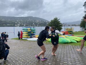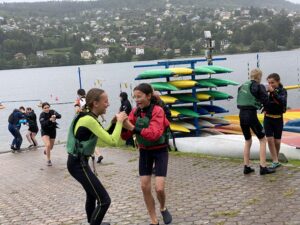 Pour l’occasion, le club proposait des animations sur le lac et en intérieur tout au long de l’après-midi avant le point d’orgue de cette célébration. Ce bel anniversaire s’est en effet conclu par un moment de convivialité entre les membres actuels du club et les anciens, parfois toujours actifs d’ailleurs. L’occasion pour Thierry Husson de rappeler en introduction de son discours que la base nautique avait vu le jour sous l’impulsion des maires Claude Boulay et Jean-Paul Lambert (ancien kayakiste lui aussi), Alain Bédez, alors adjoint aux sports, et Jean-François Duval, lui aussi ancien élu gérômois. Un bel écrin pour une belle fête intergénérationnelle qui fut également l’occasion de rappeler les valeurs du club. « Une école de la vie qui a fait grandir beaucoup de génération » pour reprendre les mots du président, et qui se décline autour de l’évasion, de la solidarité, de l’unité et de la convivialité. Un club formateur, à tous les niveaux d’ailleurs, qui a vu l’émergence de champions comme (sans être exhaustif bien sûr !) Louis Lapointe, Théo Devard, Morgan Joncour, Claire Haab ou plus récemment Chloé Nicot qui vient d’ailleurs de remporter deux titres européens.