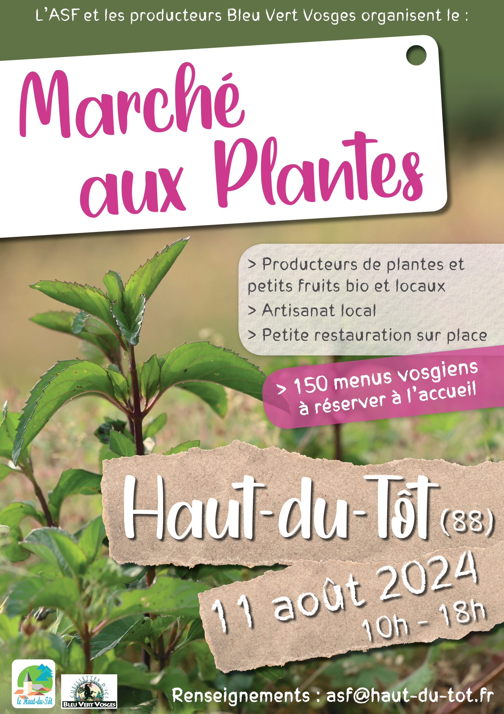 Le traditionnel Marché aux Plantes aura lieu le dimanche 11 août 2024 de 10 h 00 à 18 h 00 au Haut du Tôt.