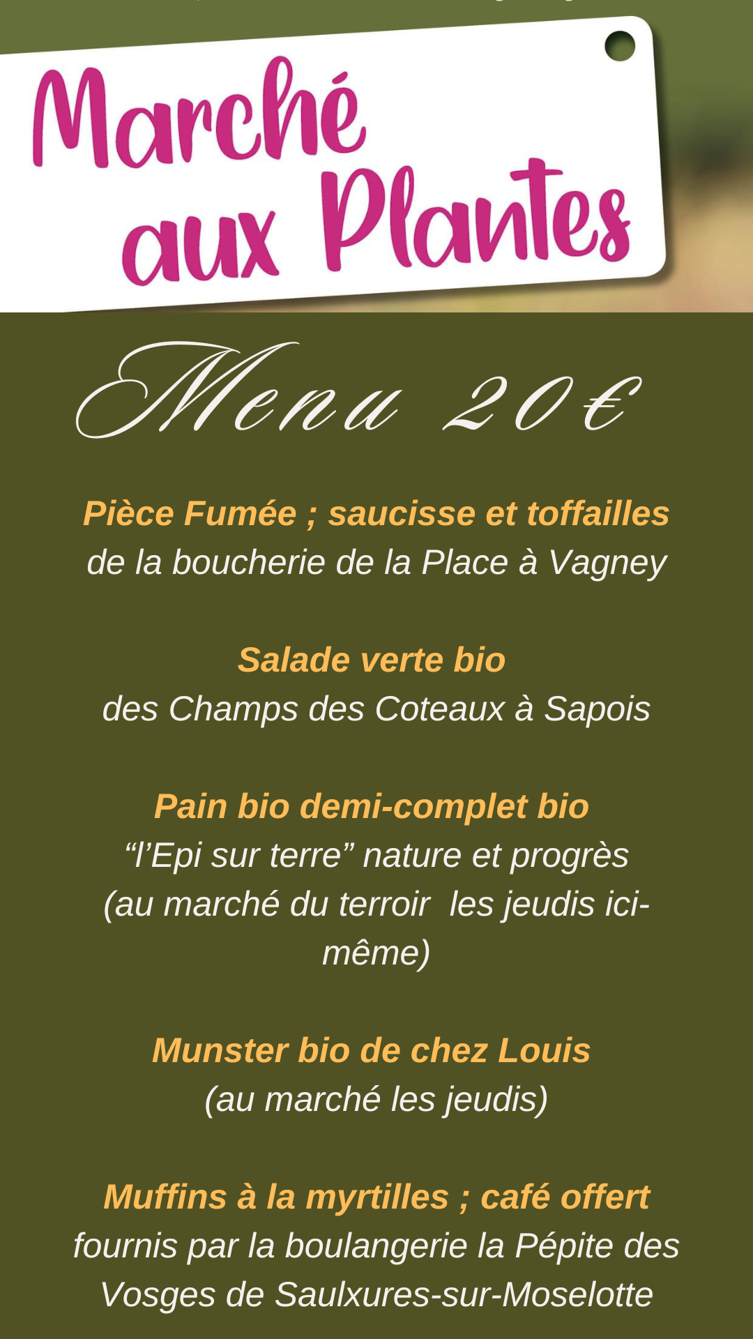 – un repas vosgien et buvette proposés par les bénévoles de l’association,