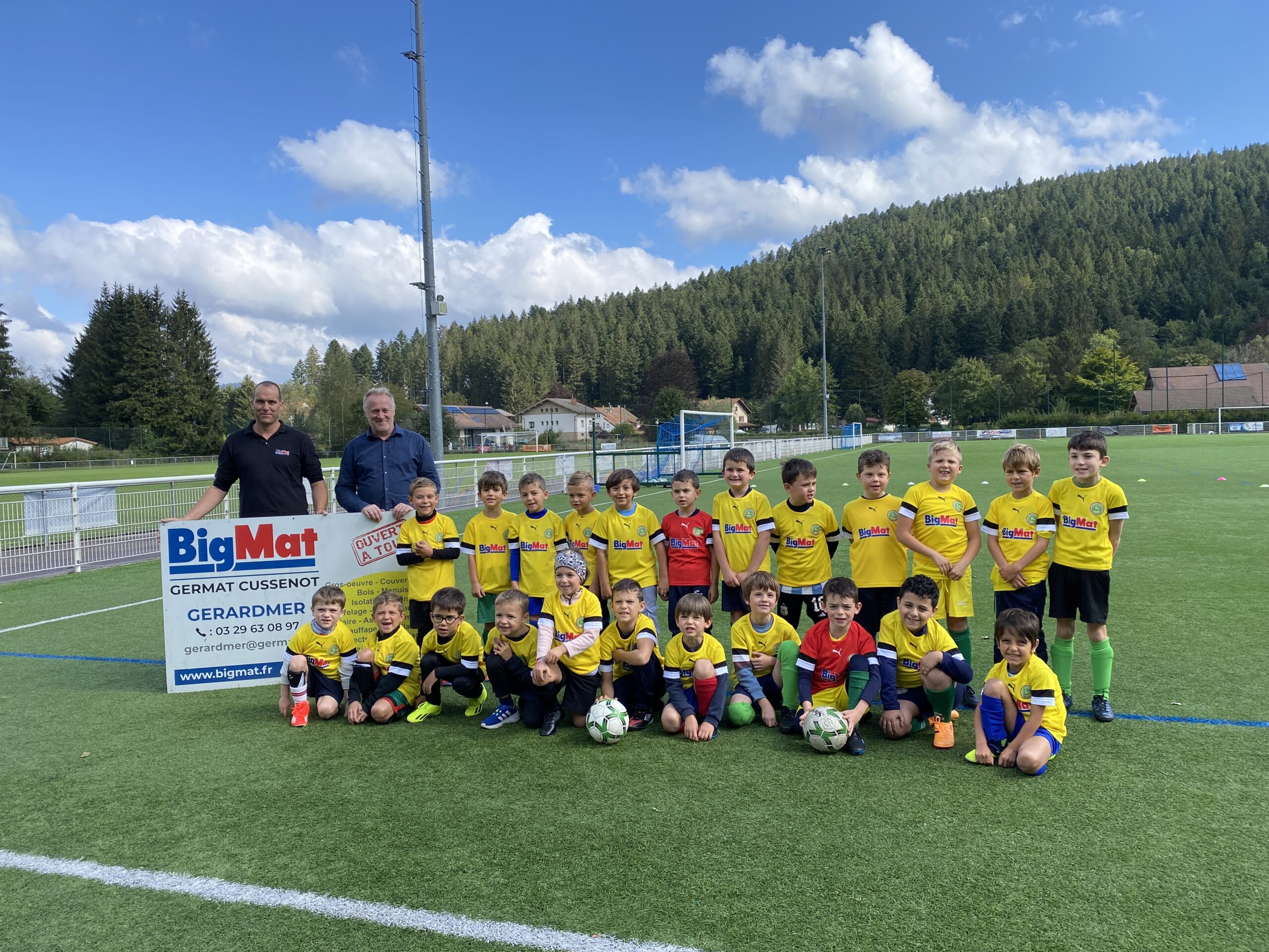 Pour leur 2e entrainement de la rentrée, les U7 et U9 ont reçu un nouvel équipement : maillot, short et chaussettes des mains du responsable de l’agence Big Mat de Gérardmer Benoît Gauthier et ont posé fièrement pour la photo souvenir. Bic Mat soutient l’ASG Foot depuis 5 ans maintenant et il offrait ce jour 28 équipements.