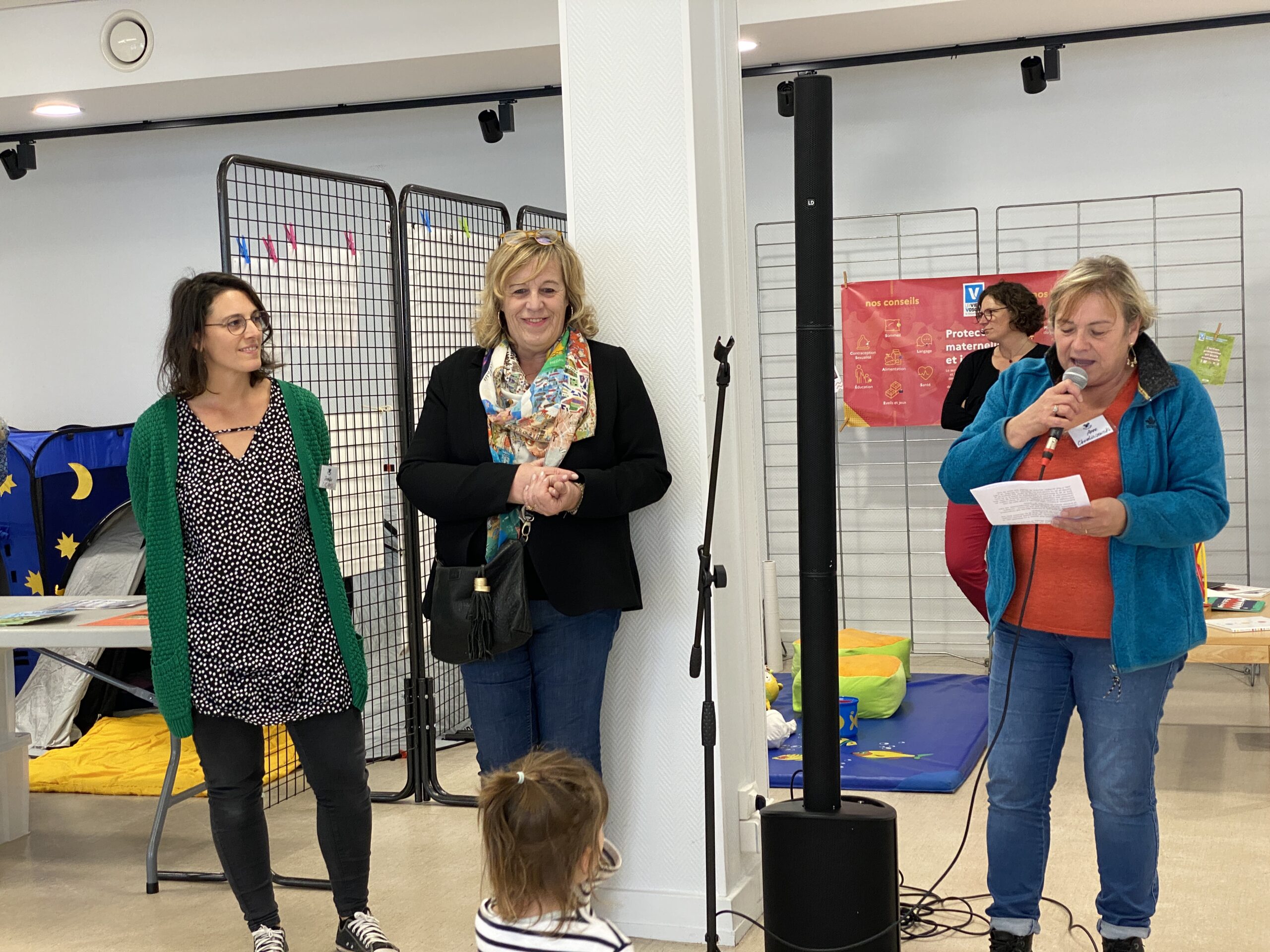 La coordinatrice du secteur enfance famille de la MCL Jennifer Calame, organisatrice de ce forum, a procédé à son inauguration aux côté de l’adjointe à la culture et à la famille Anne Chwaliszewski et de la conseillère départementale et vice présidente de la CCGHV Elisabeth Klipfel. Elle a remercié l’ensemble des partenaires présents et rappelé l’importance du soutien financier de la MSA Lorraine de la CAF88 et du CD88 sans qui le projet n’aurait pu voir le jour.