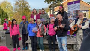 Objectifs atteints pour l’équipe de Catherine Houbre qui espérait dépasser les cinq cent inscrits. Six cent dix neuf personnes se sont mobilisées et sont venues profiter d’un belle matinée pour effectuer les 2 boucles proposées, de 4 ou 8 km, en marchant ou en courant, arborant fièrement la couleur rose. Certains participants s’étaient déguisés pour l’occasion. Un moment festif qui fut introduit en musique. Daniel Colnat s’était déplacé avec ses ateliers chant et musique de la MCL et ensemble ils ont interprété sa chanson « Toi » écrite spécialement pour la cause en Bretagne avec son ami François Cabanis et l’aide de Gérôme Briard et Guizmo du groupe Tryo.
