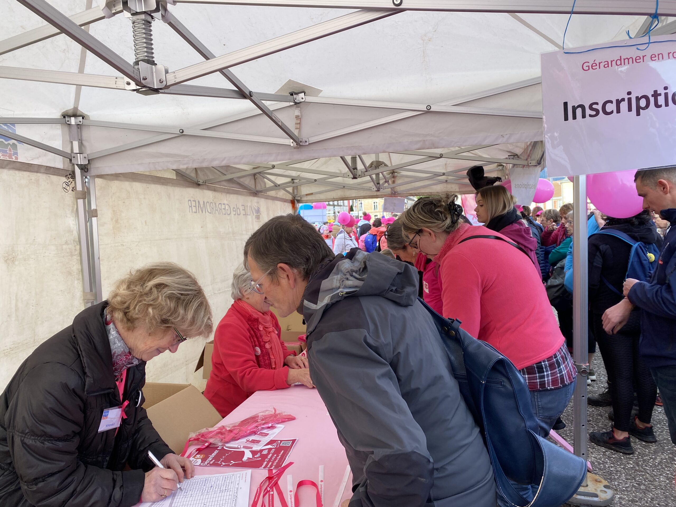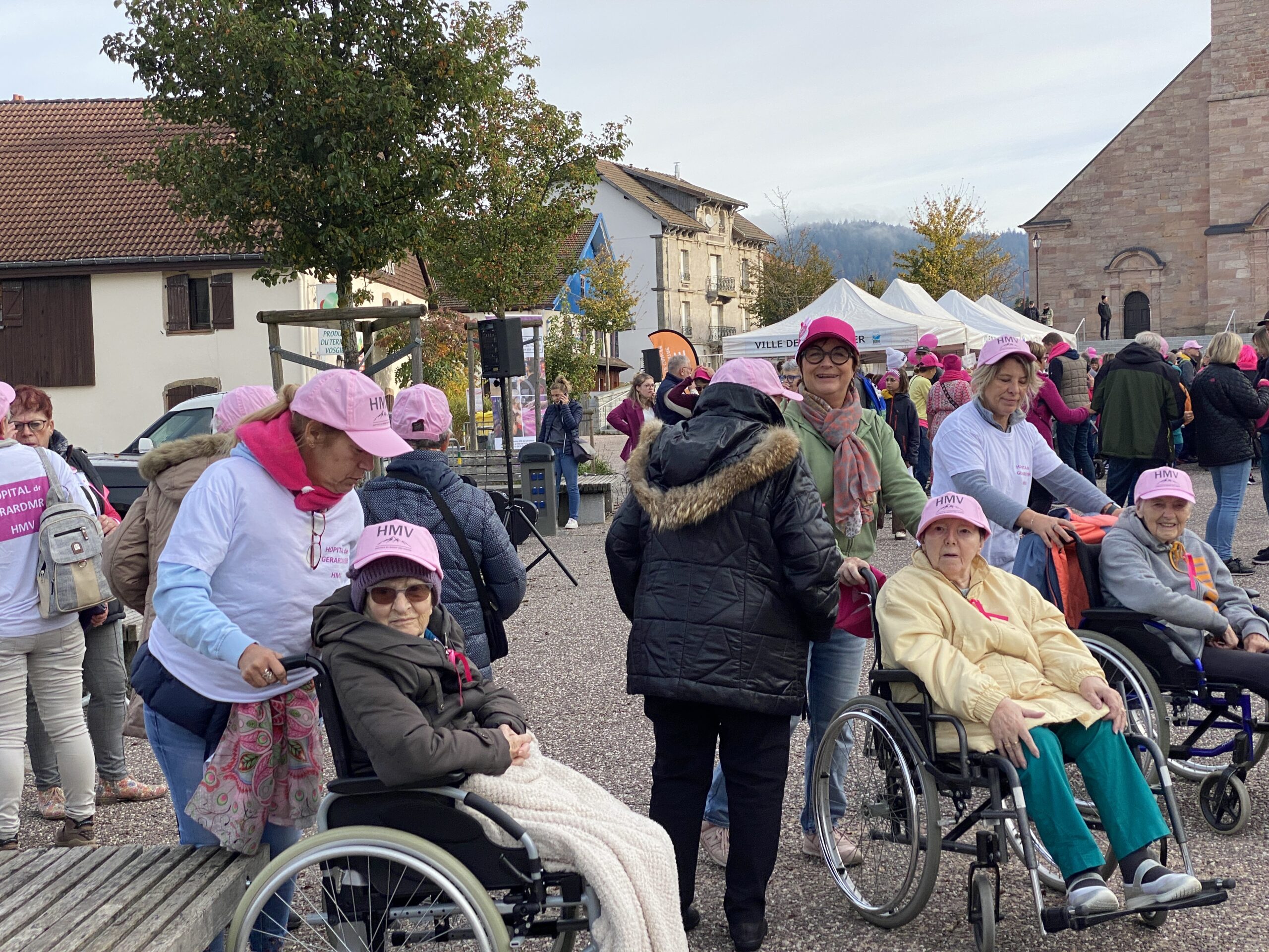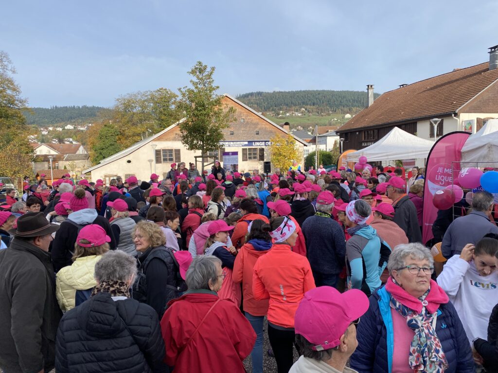 Ce dimanche matin 20 octobre La Ligue Contre le Cancer avait donné rendez vous aux marcheurs roses sur la place du Vieux Gérardmer. Elle avait aussi invité le soleil !