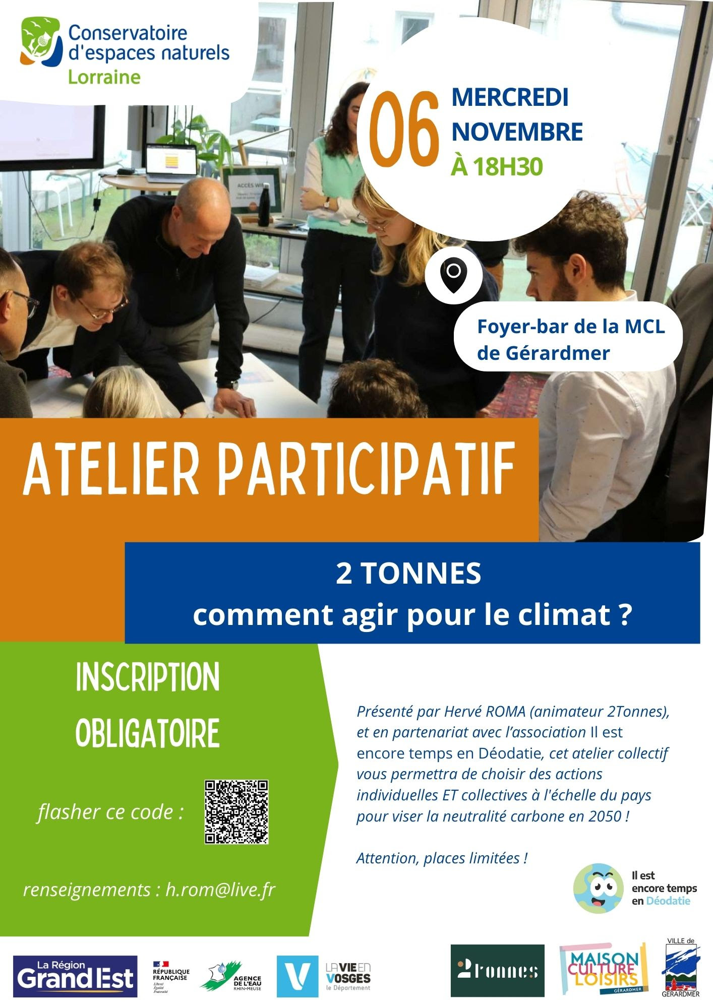 Pour le prochain rendez-vous C’Est Nature, un thème d’actualité : notre empreinte carbone et la nécessaire transition pour s’adapter au changement climatique. C’est sous forme d’atelier que vous serez invités à réfléchir en groupe (14 personnes max) sur cette thématique. Cette soirée (prévoir au moins 3 heures) sera animée par Hervé ROMA, animateur de l’Atelier 2 tonnes, en partenariat avec l’association Il est encore temps en Déodatie.