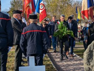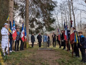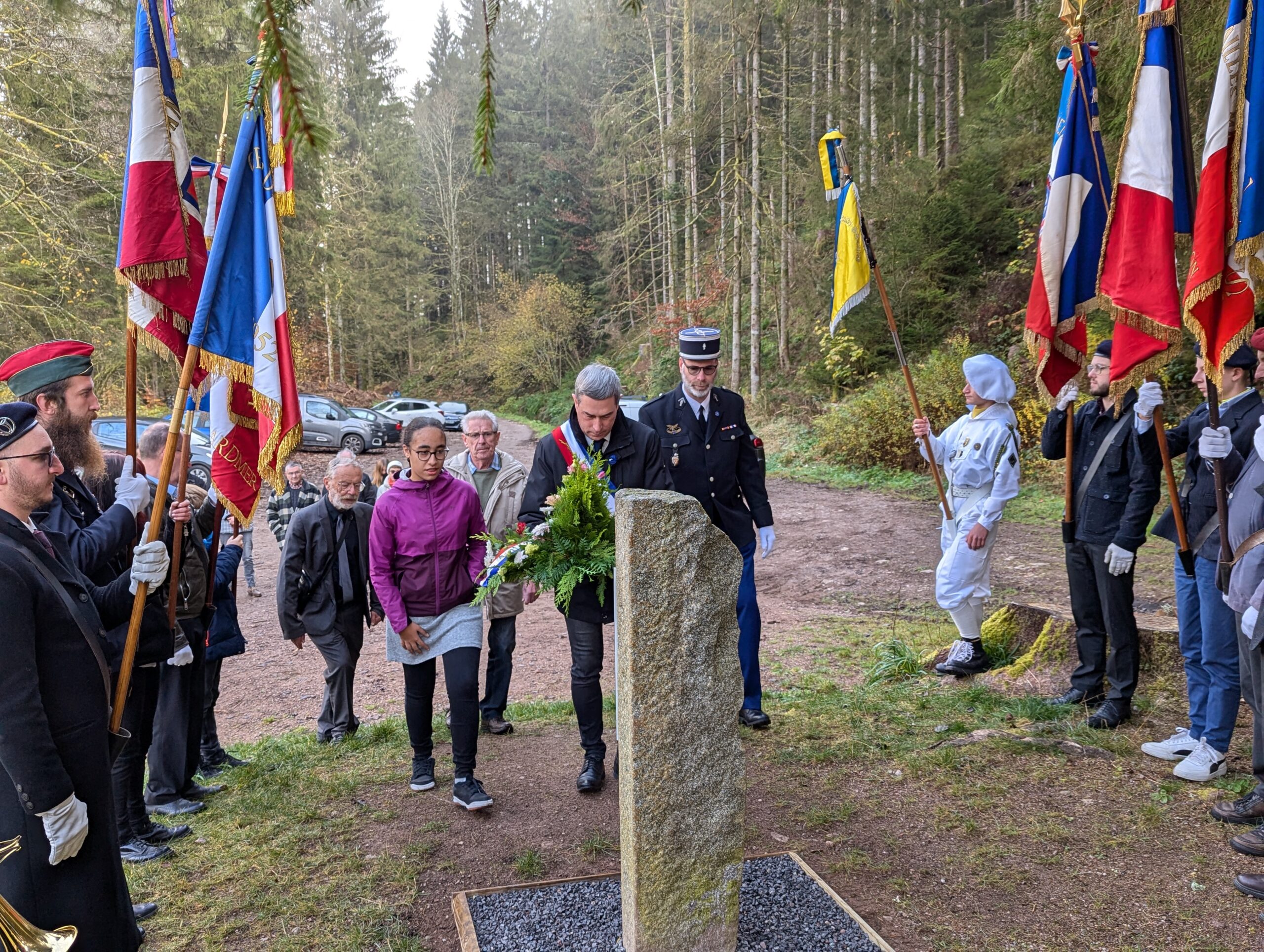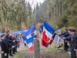 La traditionnelle cérémonie commémorative de l’armistice du 11 novembre 1918 a débuté ce lundi matin du côté de Ramberchamp, non loin du terrain de moto-cross où se trouve désormais la stèle en hommage aux 6 soldats français fusillés pour l’exemple. Une première étape qui s’est déroulée en présence d’une petite délégation de l’Union Musicale, des porte-drapeaux, ainsi que des associations patriotiques. Le maire de Gérardmer a ainsi procédé à un dépôt de gerbe accompagné de l’adjudant-chef Denis Bertholet et d’une représentante du Conseil Municipal des Jeunes (CMJ).