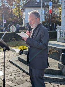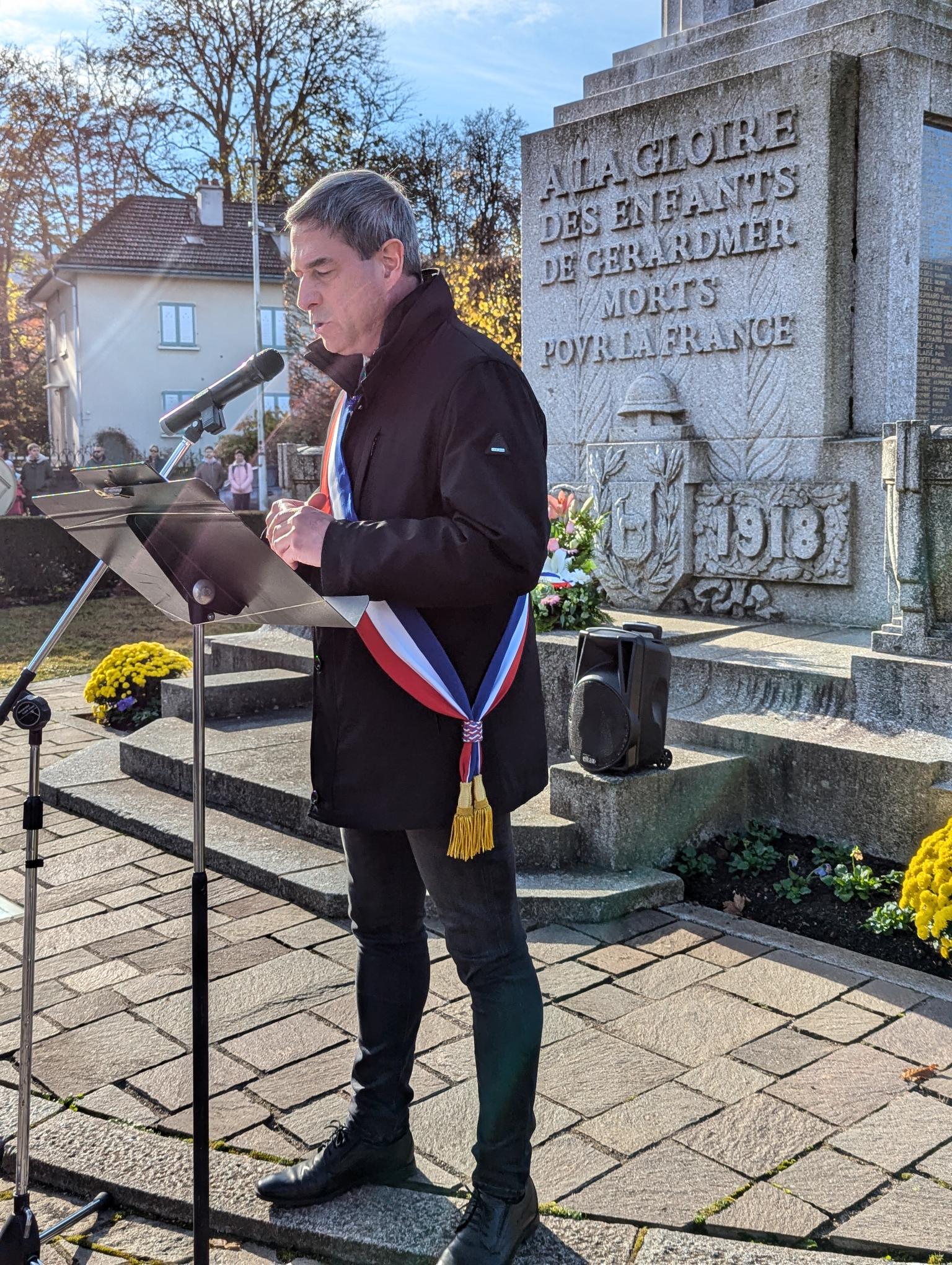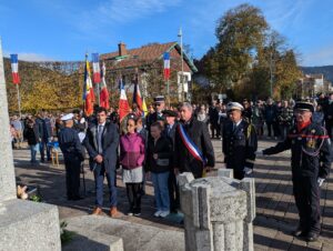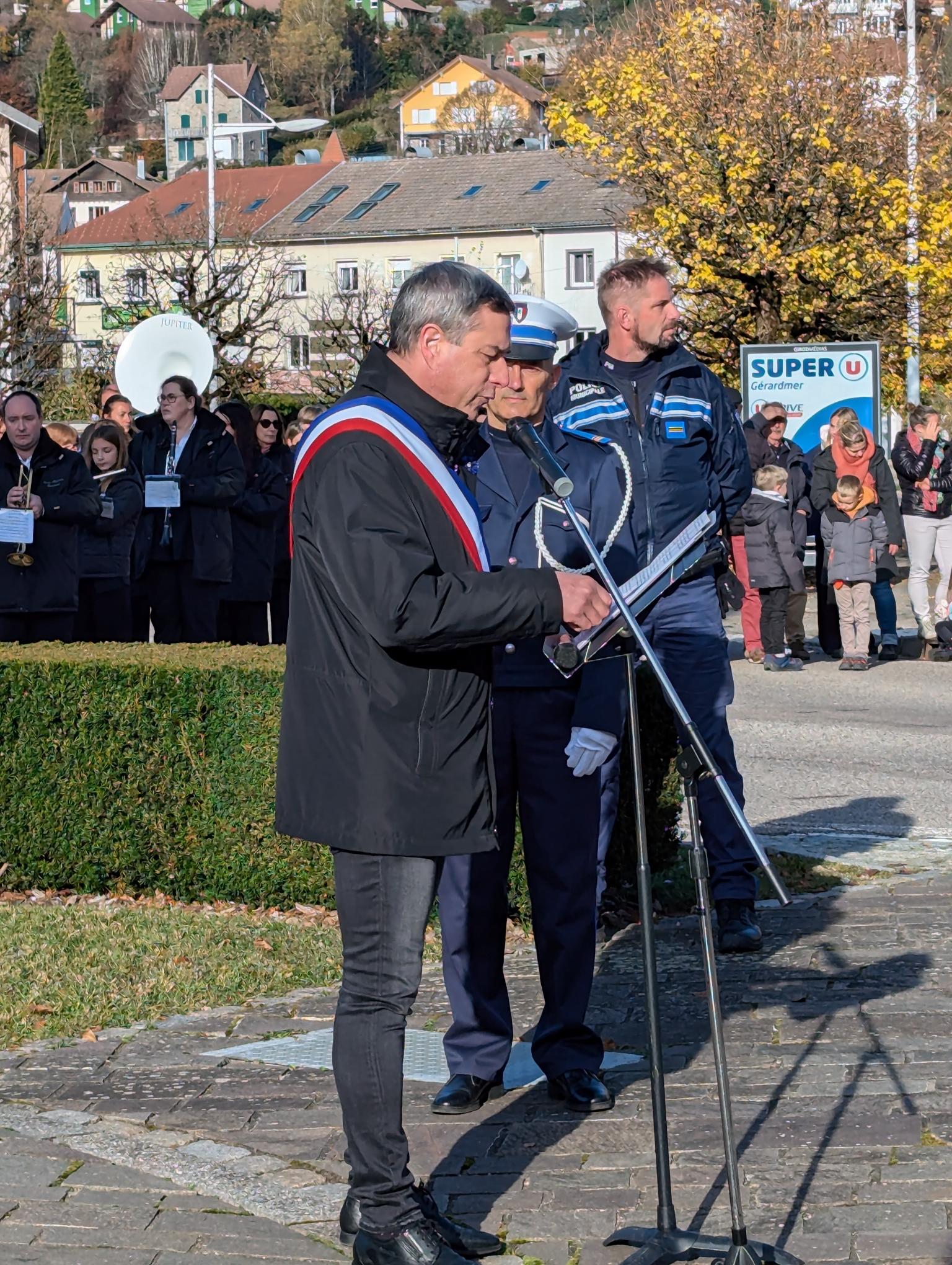 Après cette première étape, le cortège a pris la direction du cimetière local et de son carré militaire où les sapeurs-pompiers et leur chef Yvan Ertzbischoff se sont joints à la commémoration. Stessy-Speissmann Mozas a procédé à un nouveau dépôt de gerbe en compagnie du conseiller départemental Thomas Gion, de membres du CMJ et de représentants des autorités locales. Enfin, la cérémonie s’est achevée au monument aux morts de la rue Lucienne avec une Union Musicale au complet pour un nouveau dépôt de gerbe et plusieurs interventions orales : des élèves de l’école des Bas Rupts ont lu une lettre d’un soldat de la première guerre à sa famille, puis Francis Bretenoux a procédé à la lecture du message du Ministre des Armées et des Anciens Combattants avant de laisser la parole à Alain Morel. Le président de l’ARAC88 qui a lu à son tour le message de l’amicale qu’il préside. Le maire de Gérardmer a conclu par une dernière allocution évoquant entre autres les deux guerres mondiales et les souffrances qu’elles avaient engendrées avant de laisser place à l’Union Musicale et au pot de l’amitié programmé en mairie.