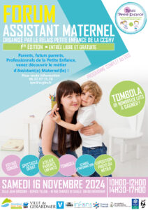 La 1ère édition du Forum Assistant Maternel sur le secteur de la Communauté de Communes Gérardmer Hautes Vosges se déroulera le Samedi 16 novembre 2024 à l’espace Tilleul (salle Jean Grossier) de Gérardmer. Il est organisé par le Relais Petite Enfance de la CCGHV.