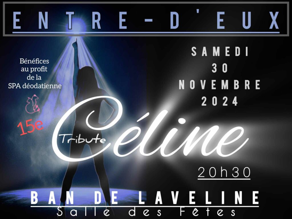« Entre-d’eux Tribute Céline » donnera sa toute première représentation le samedi 30 novembre 2024 à la salle des fêtes de Ban de Laveline pour un concert au profit de la SPA Déodatienne.