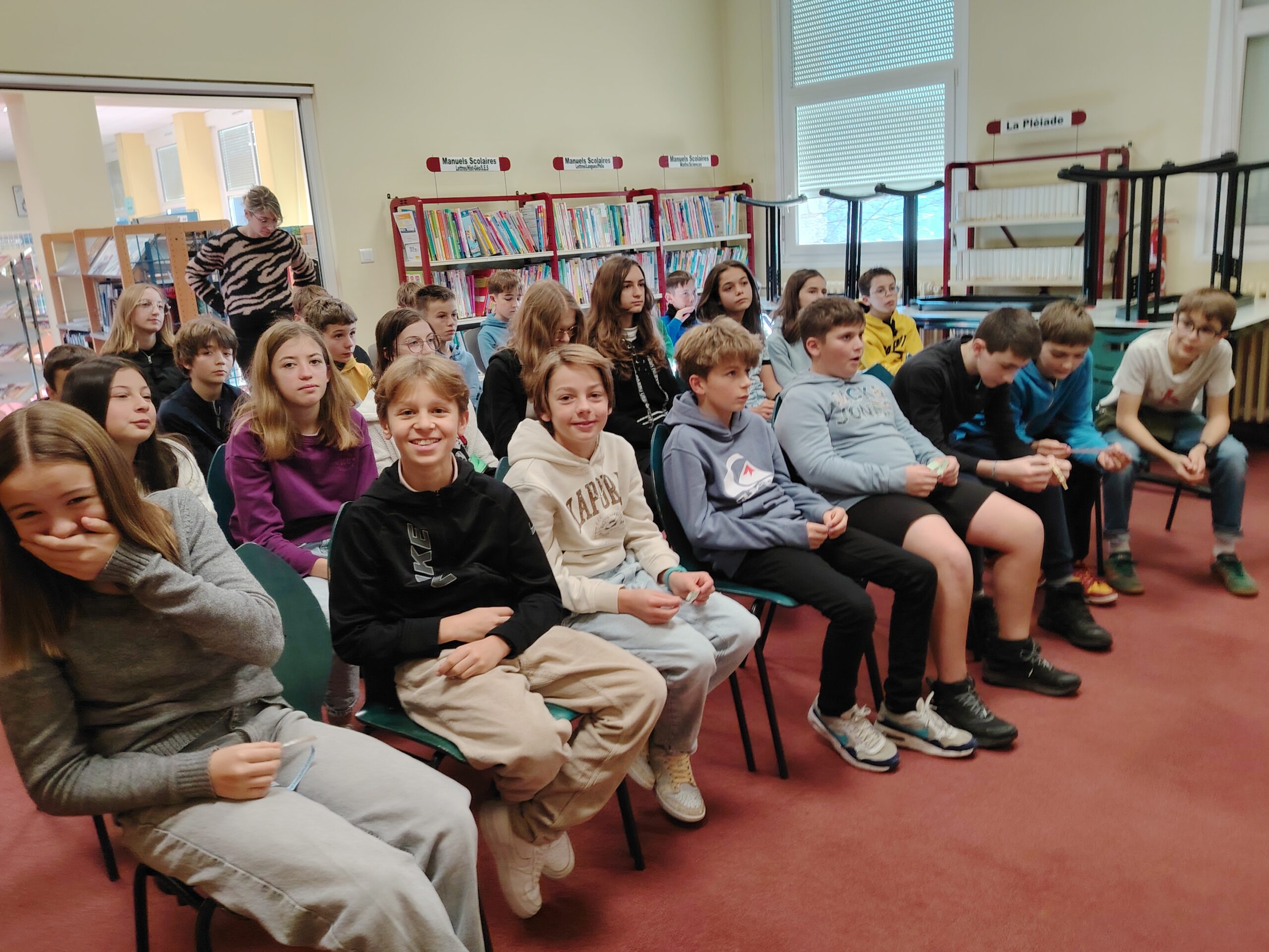 Une trentaine d’élèves en classe de 5e et leurs professeures de français ainsi que les documentalistes Nathalie Picot et Prisca Rudatis ont organisé une rencontre dans le cadre de la manifestation intitulée « Jeunes en librairie ».