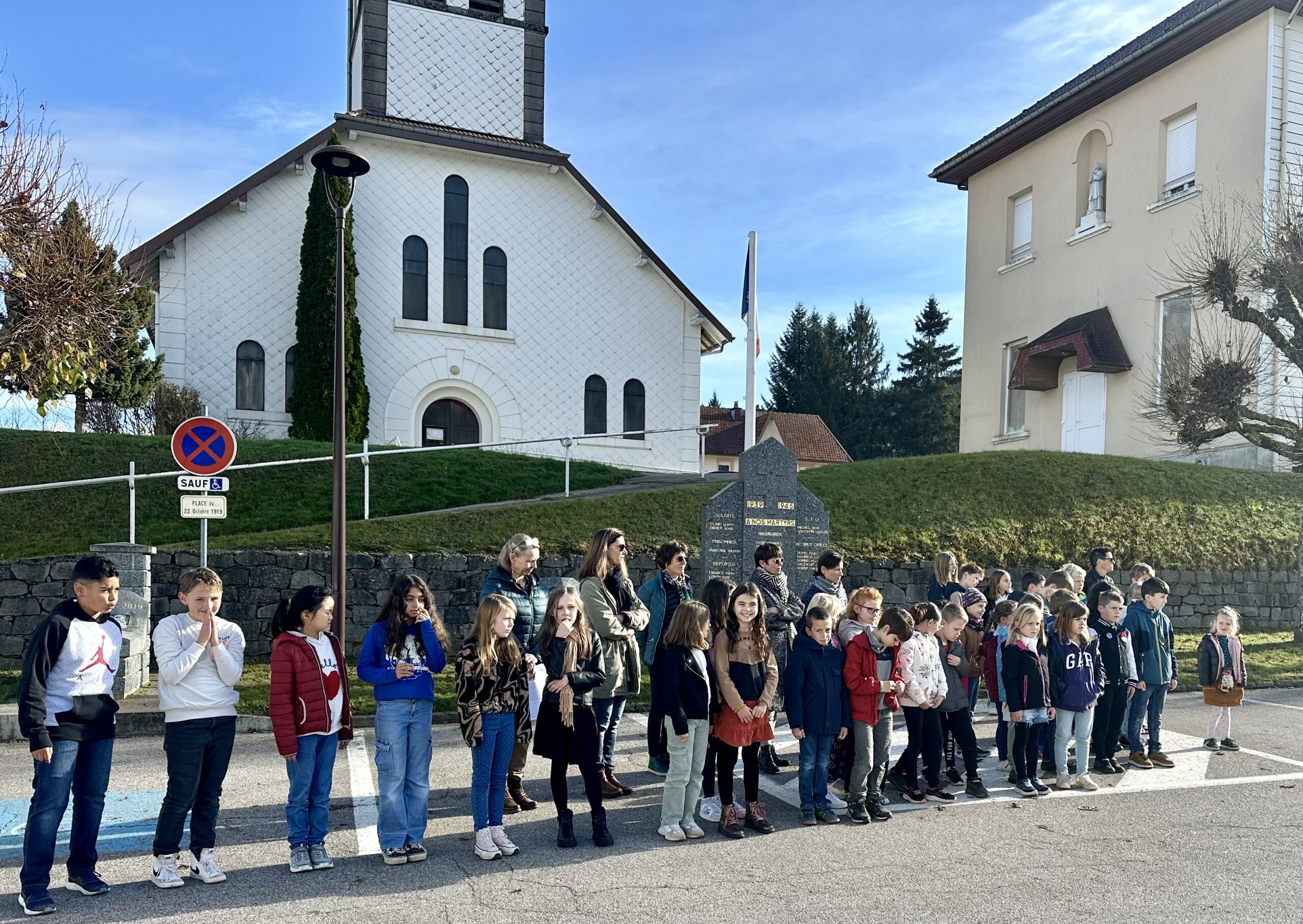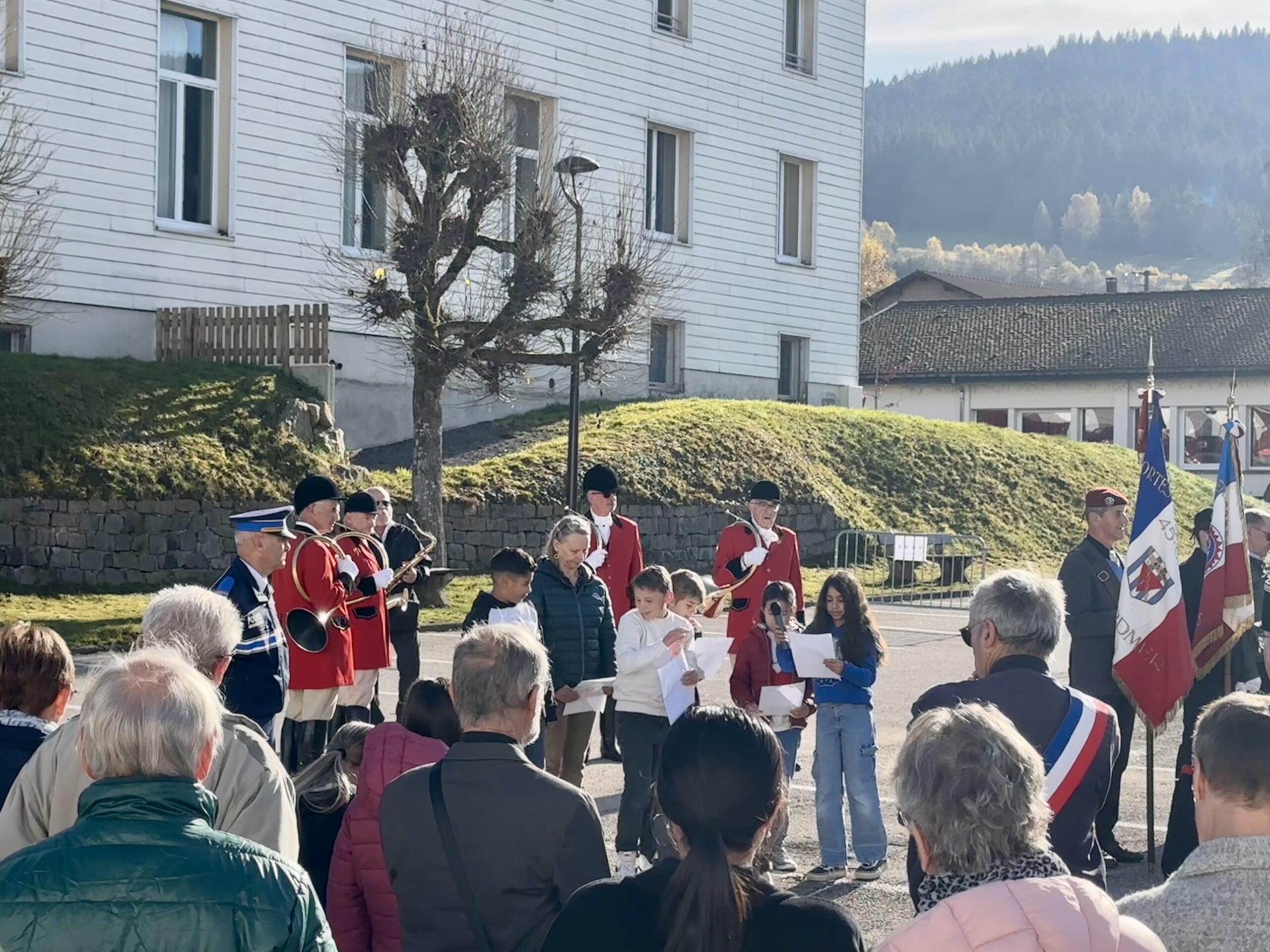 Ce lundi matin, dans le cadre des cérémonies du 11 novembre, sous un ciel ensoleillé et devant un public venu en masse, les élèves de primaire de l’école des deux lacs de Xonrupt-Longemer, accompagnés de leurs professeurs , ont rendu un hommage aux combattants et aux victimes de la première guerre mondiale .