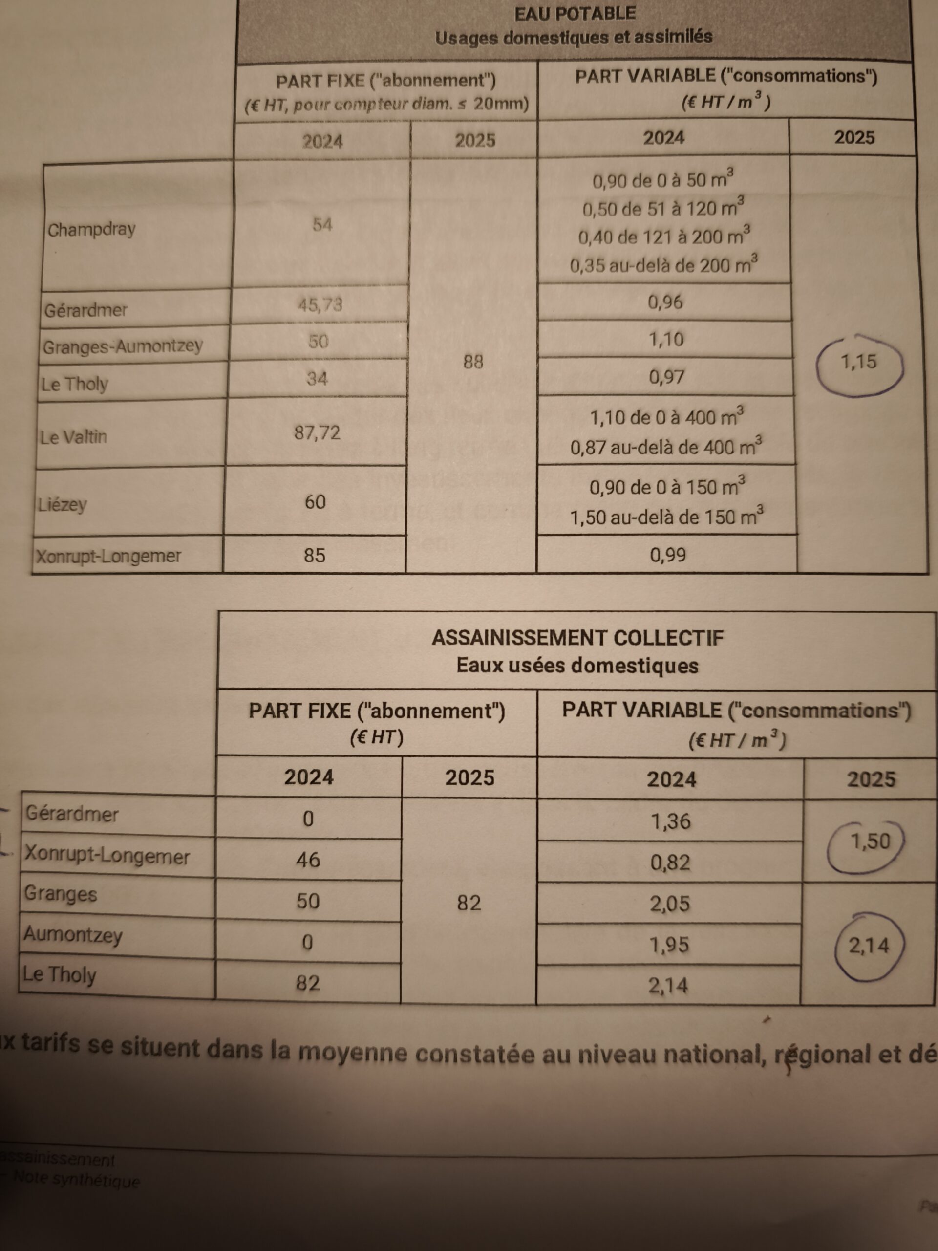 De plus, vous indiquez une augmentation du prix de l’eau de 19% de 2024 à 2025,et l’assainissement de 10%.