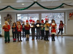 Ce beau moment de partage entre les écoliers et les seniors de l’EHPAD a eu lieu ce vendredi 20 décembre, impliquant les membres de l’OGEC (Organisme de Gestion de l’Enseignement Catholique), les écoliers, l’association des parents d’élèves et l’équipe éducative. Harmonie Mutuelle, qui finance en partie le projet depuis ses débuts, était également représentée par Mme Grosdidier et M. Durand.