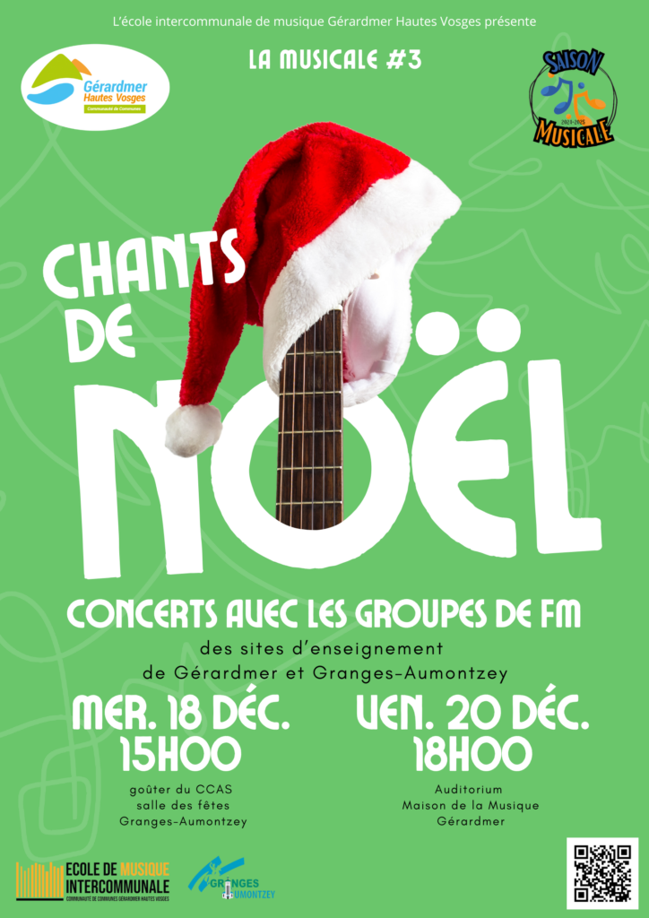 - Vendredi 20 décembre à 18h00 – Auditorium de la Maison de la Musique à Gérardmer : audition de Noël avec la participation en plus, de quelques élèves instrumentistes et petits ensembles.