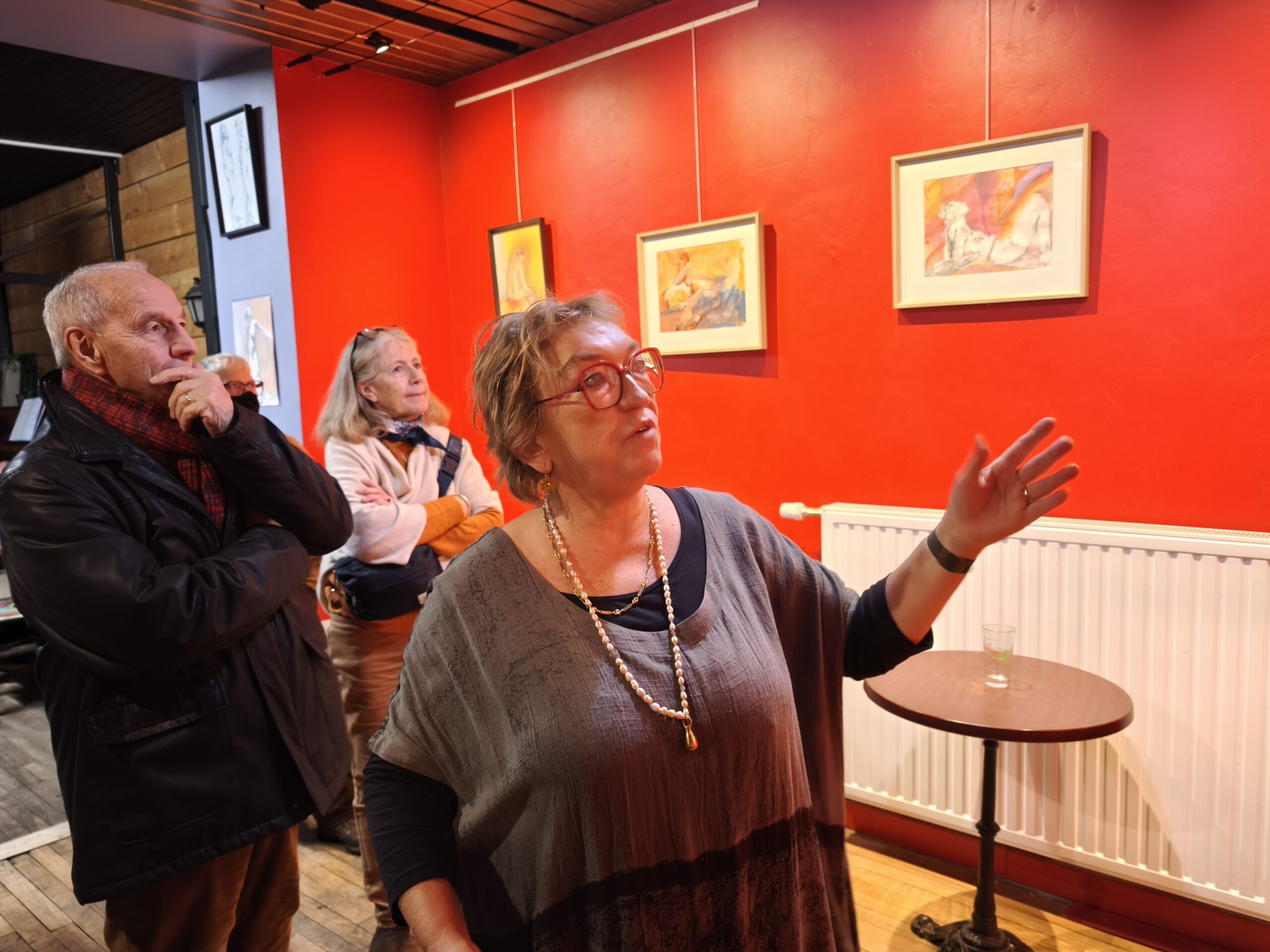 Le vernissage de cette exposition, visible en entrée libre et aux horaires d’ouverture du Grattoir, a eu lieu ce vendredi en fin d’après-midi et en présence de plusieurs invités qui ont pu faire un petit tour des œuvres accrochées commenté par l’artiste. Médecin à la retraite désormais, Martine Ruppé a toujours dessiné, mais c’est il y a une quinzaine d’années qu’elle a réellement commencé à se focaliser sur les modèles vivants, le tout avec des pauses d’une à 10 minutes maximum, et généralement sans retouches. « Ça permet de s’habituer à  »croquer » un peu n’importe où, sur le vif, et de retrouver aussi l’essence des choses » précise l’artiste.