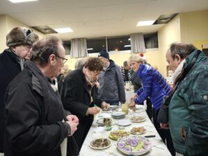 Les bénévoles de l’AMAP avaient donc préparé quelques gourmandises salées et sucrées à base des produits fournis par les producteurs locaux. Il y avait donc foule vendredi soir, car La Cagette à Venir, fondée en 2008, n’a cessé depuis de s’agrandir pour compter désormais une quarantaine d’adhérents rien que pour la livraison hebdomadaire de légumes. « Il est également possible d’adhérer sans forcément prendre les légumes chaque semaine mais uniquement pour avoir accès aux autres produits proposés. l’adhésion est de 7 euros et la disponibilité des produits respecte la saisonnalité » précise la présidente de l’AMPA Claire Jeandidier.