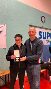 Mais revenons-en à la compétition qui a vu l’équipe belge s’imposer dans cette première rencontre de la saison. L’équipe liégeoise devance dans l’ordre Forbach, Gérardmer, Sélestat et Épinal. Tout ce petit monde s’est réuni en fin d’après-midi pour la traditionnelle remise des prix qui s’est déroulée en présence de Karine Bédez, adjointe aux sports de la ville. Et il y avait enfin une belle cerise sur ce gâteau : cette journée s’est clôturée par la remise de la médaille d’or décernée par la Fédération Française de Handball à Rachel Masson, à sa plus grande surprise. C’est le président du comité des Vosges, Alexandre SPELTHAHN, qui a eu le plaisir de remettre cette distinction à la présidente du club gérômois. Une médaille qui vient récompenser plus de 22 ans de bénévolat et un engagement pour le hand fauteuil qui porte ses fruits.
