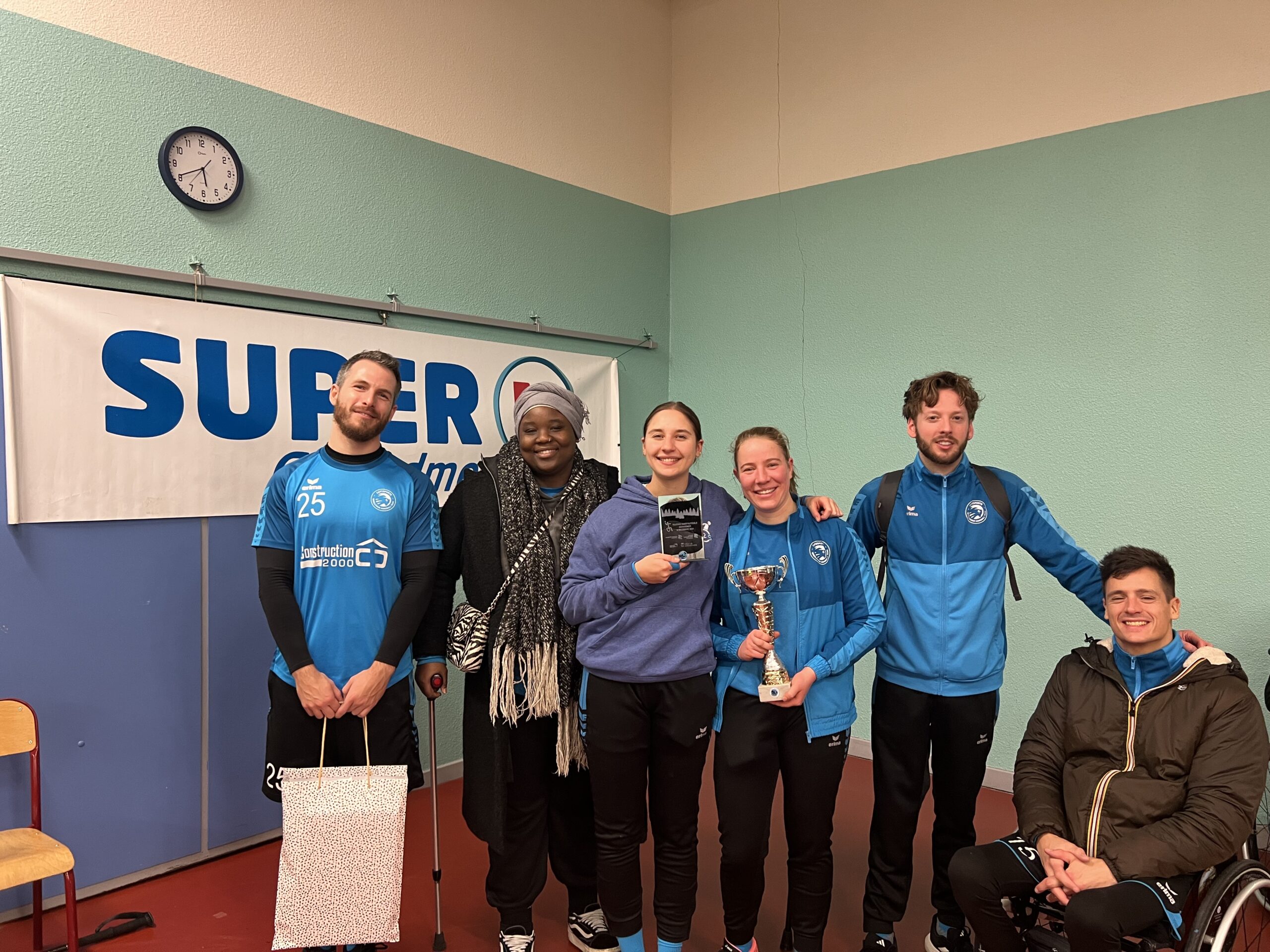 Ce premier tournoi de l’année a débuté dès le matin, rassemblant les équipes d’Épinal, Forbach, Sélestat, Gérardmer et de Liège qui se sont affrontées toute la journée dès 9 h 30. La mixité étant de mise dans cette discipline, chaque formation doit être obligatoirement composée (au minimum) de deux personnes en situation de handicap et d’une femme, rappelle Rachel Masson, joueuse et présidente de l’ASG, club en devenir qui compte 9 licenciés (dont 8 étaient présents ce dimanche). Et de rappeler que la saison se poursuivra notamment en janvier à Sélestat et en mars à Forbach.